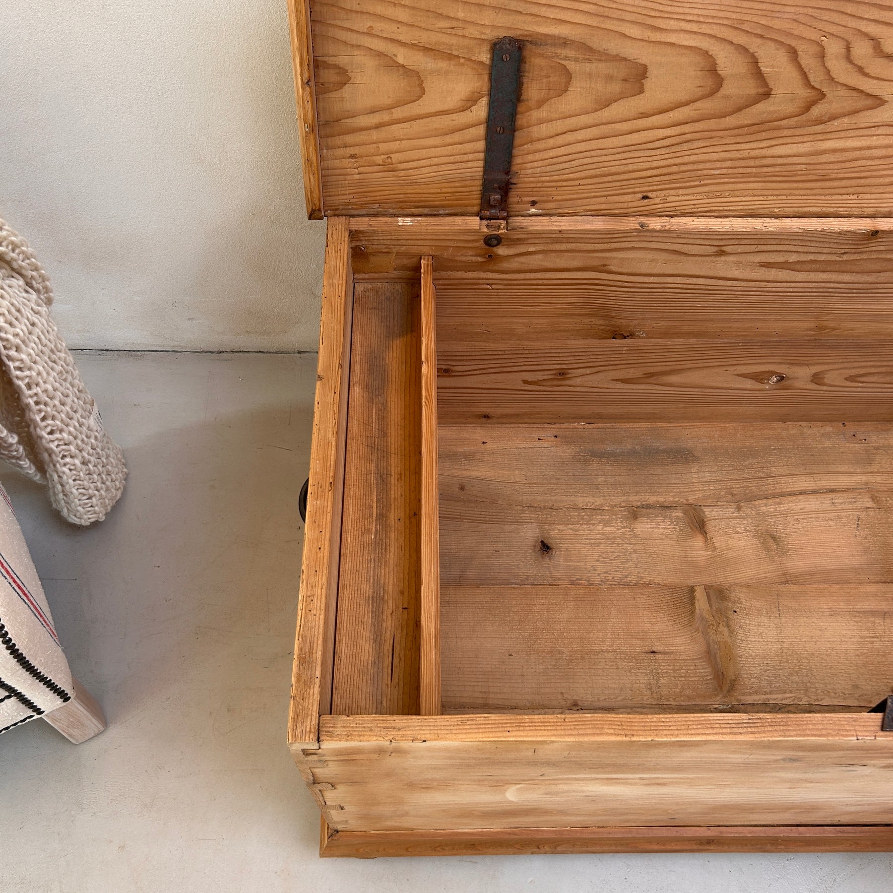 A classic solid wood blanket box / wooden chest, full of character and practical appeal.