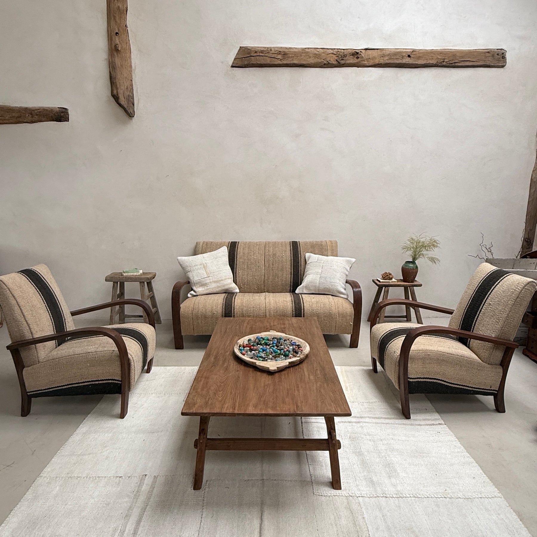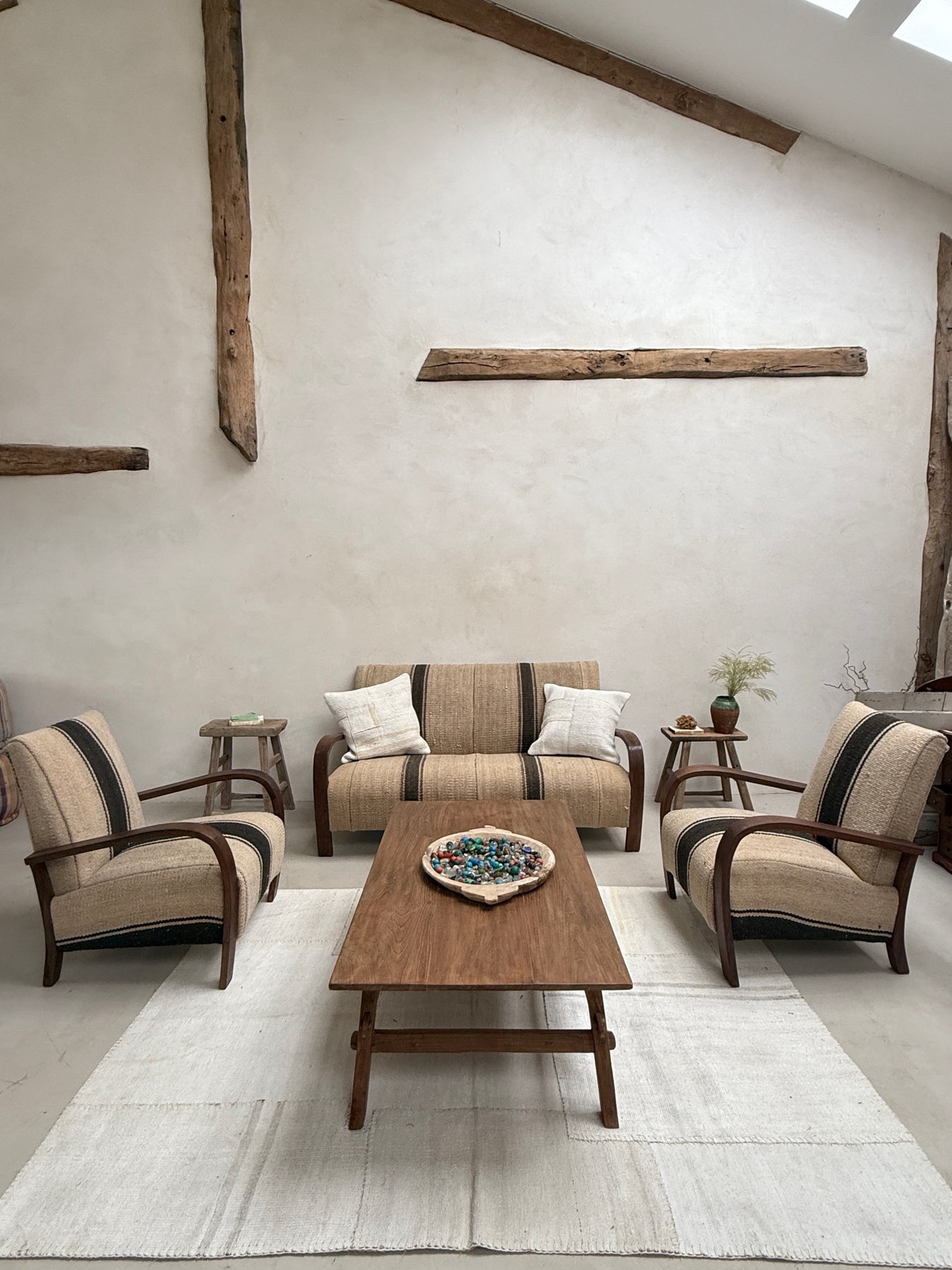 This unique sofa and armchair collection is newly made for Home Barn and upholstered in traditional handwoven antique Moroccan woollen textiles. The fabric, handmade in the Atlas mountains, is a blend of sheep & goat wool, and would have originally been used to decorate the interior of Moroccan Caidal tents of nomadic travellers.