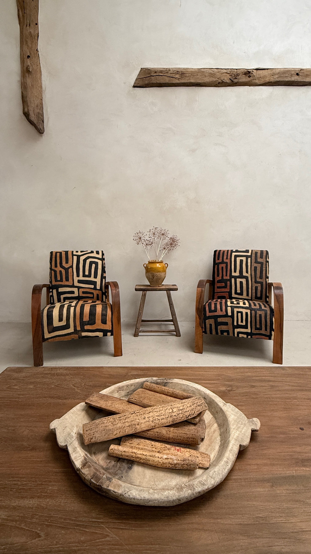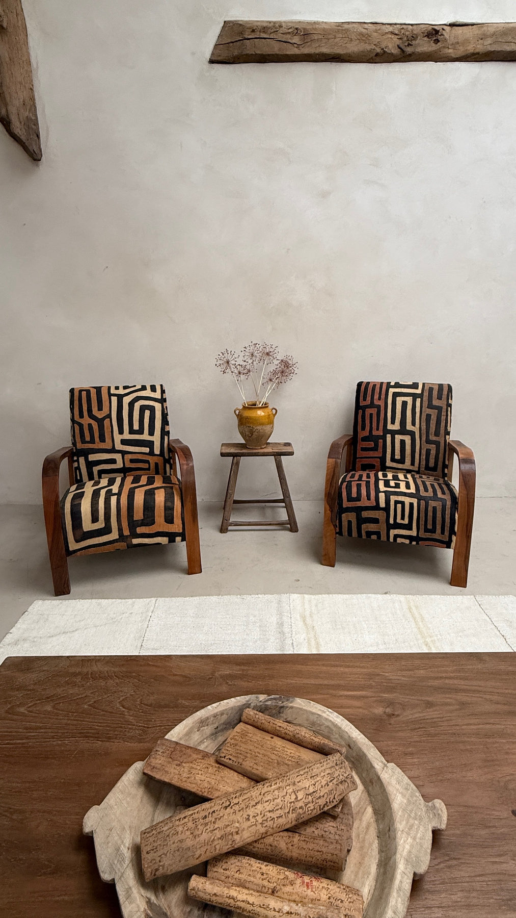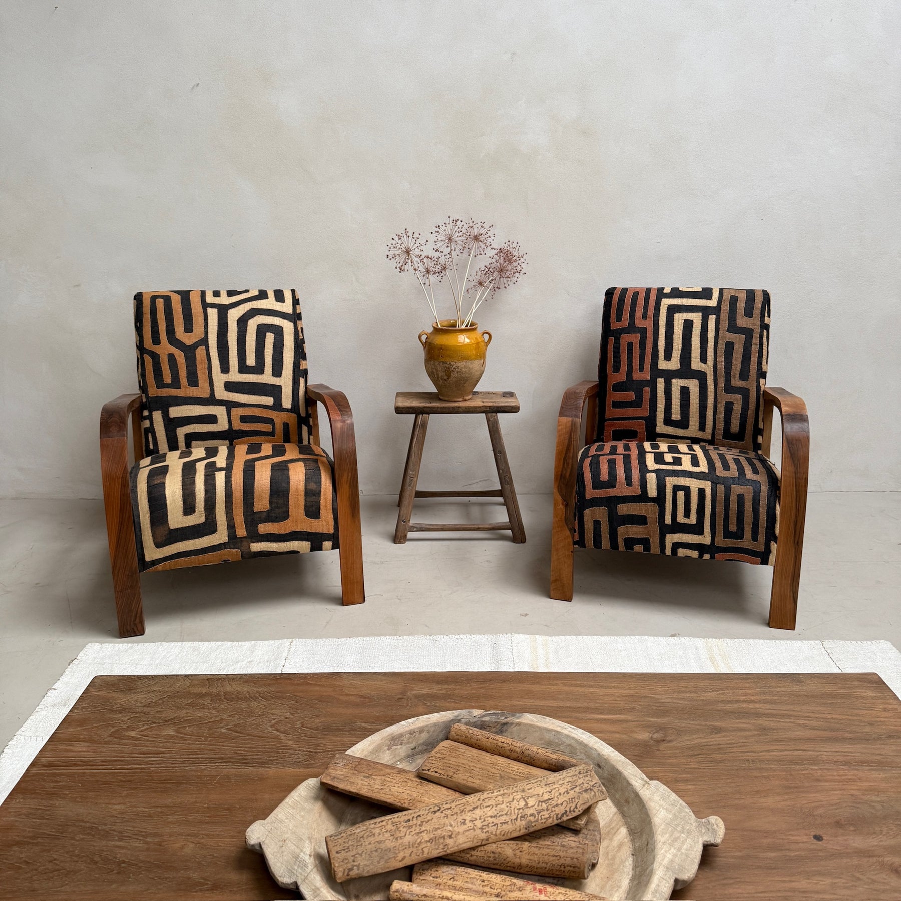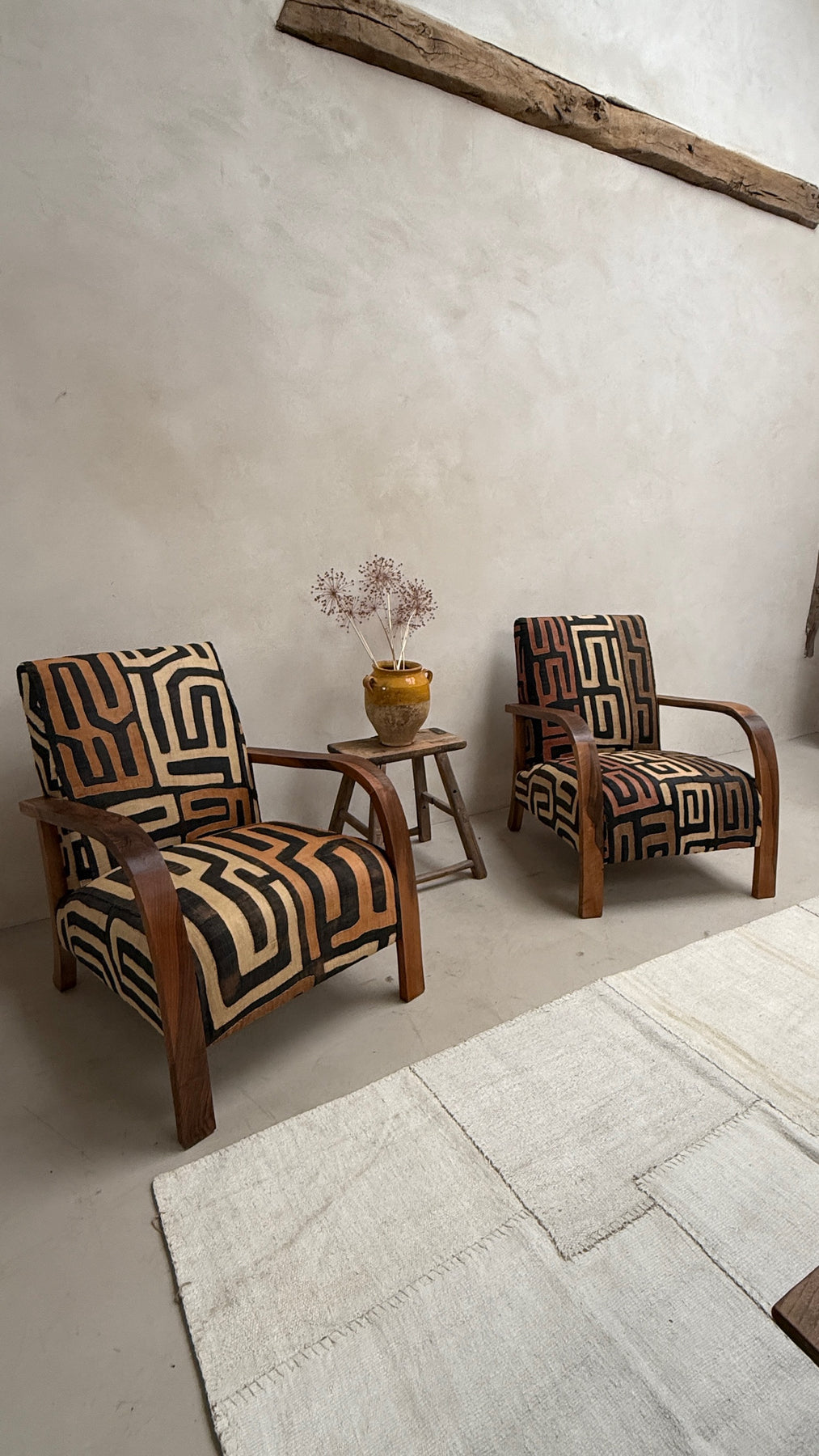 This unique armchair collection is newly made for Home Barn and upholstered in traditional African hand-woven and hand-stitched tribal textile panels made from natural raffia palm fibres and dyed naturally using vegetable dyes.
