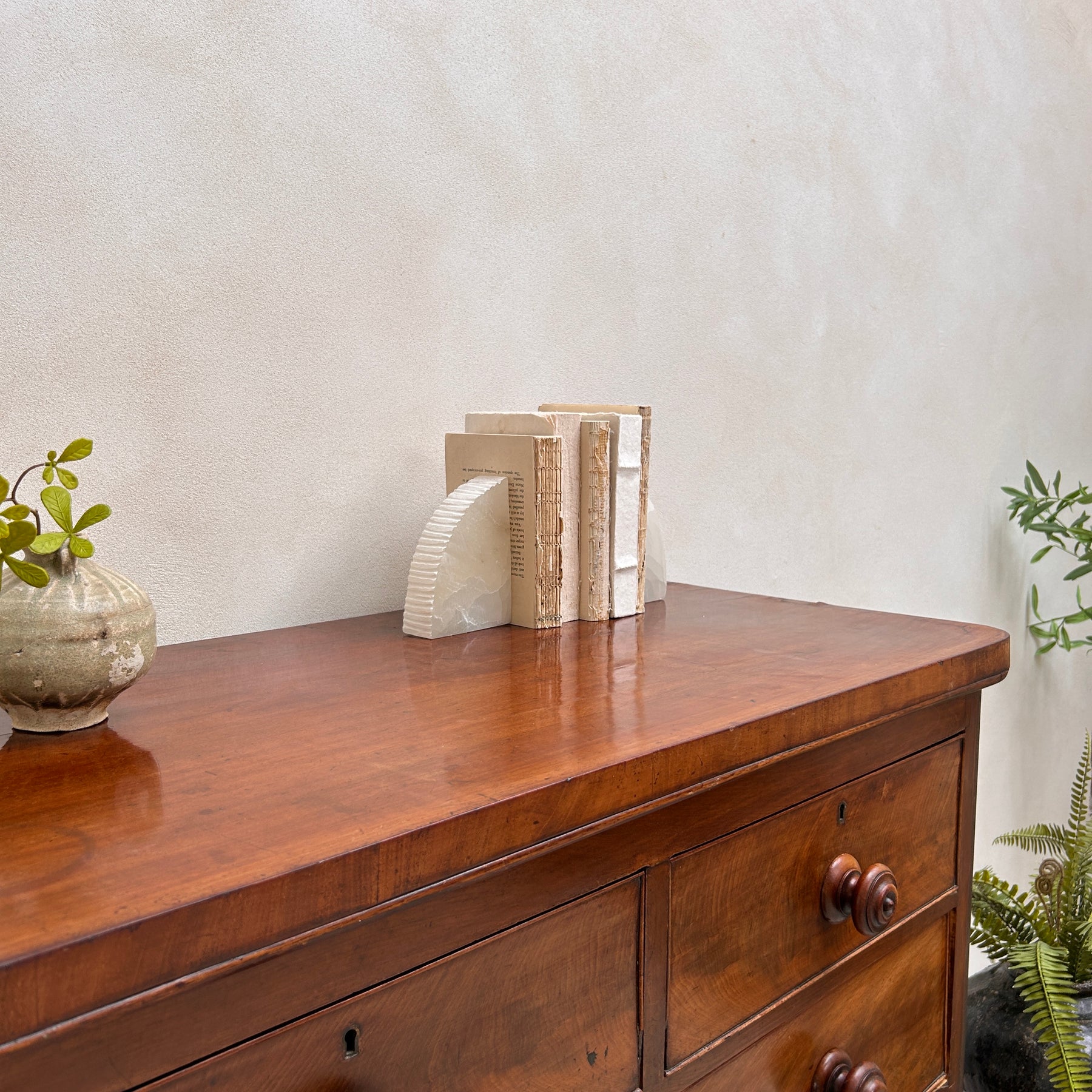 With its clean lines and balanced proportions, this antique mahogany chest of drawers provides generous storage across multiple drawers, making it as functional as it is decorative. Original-style handles and a softly aged patina enhance its authentic character, making it a standout piece for both classic and contemporary interiors.