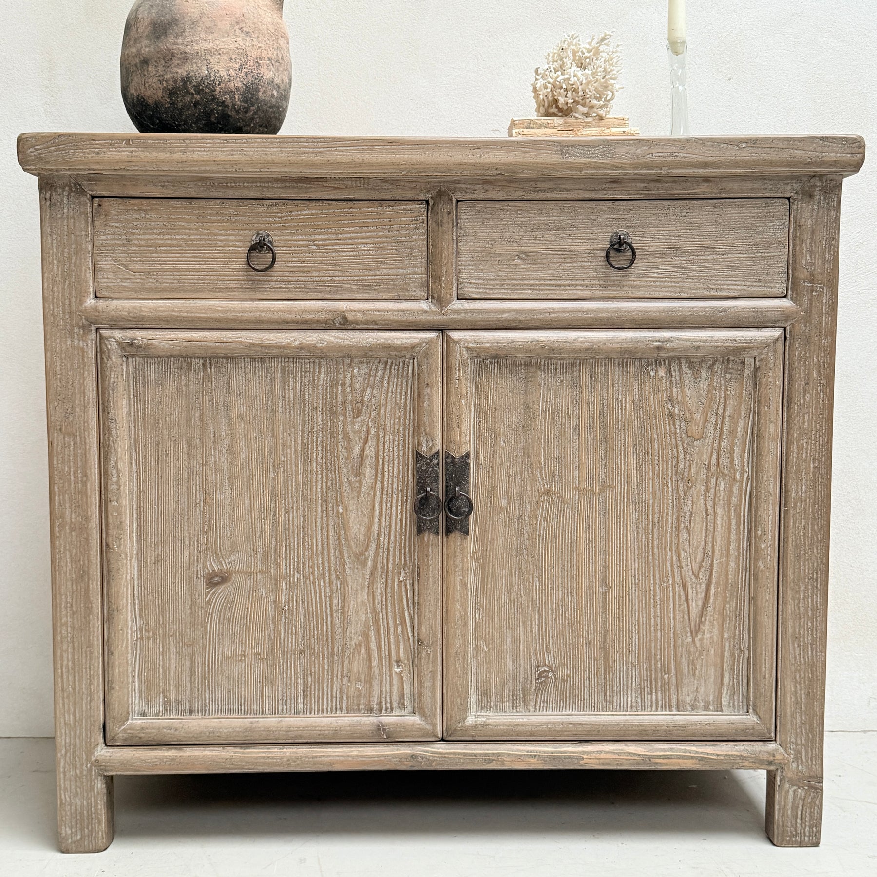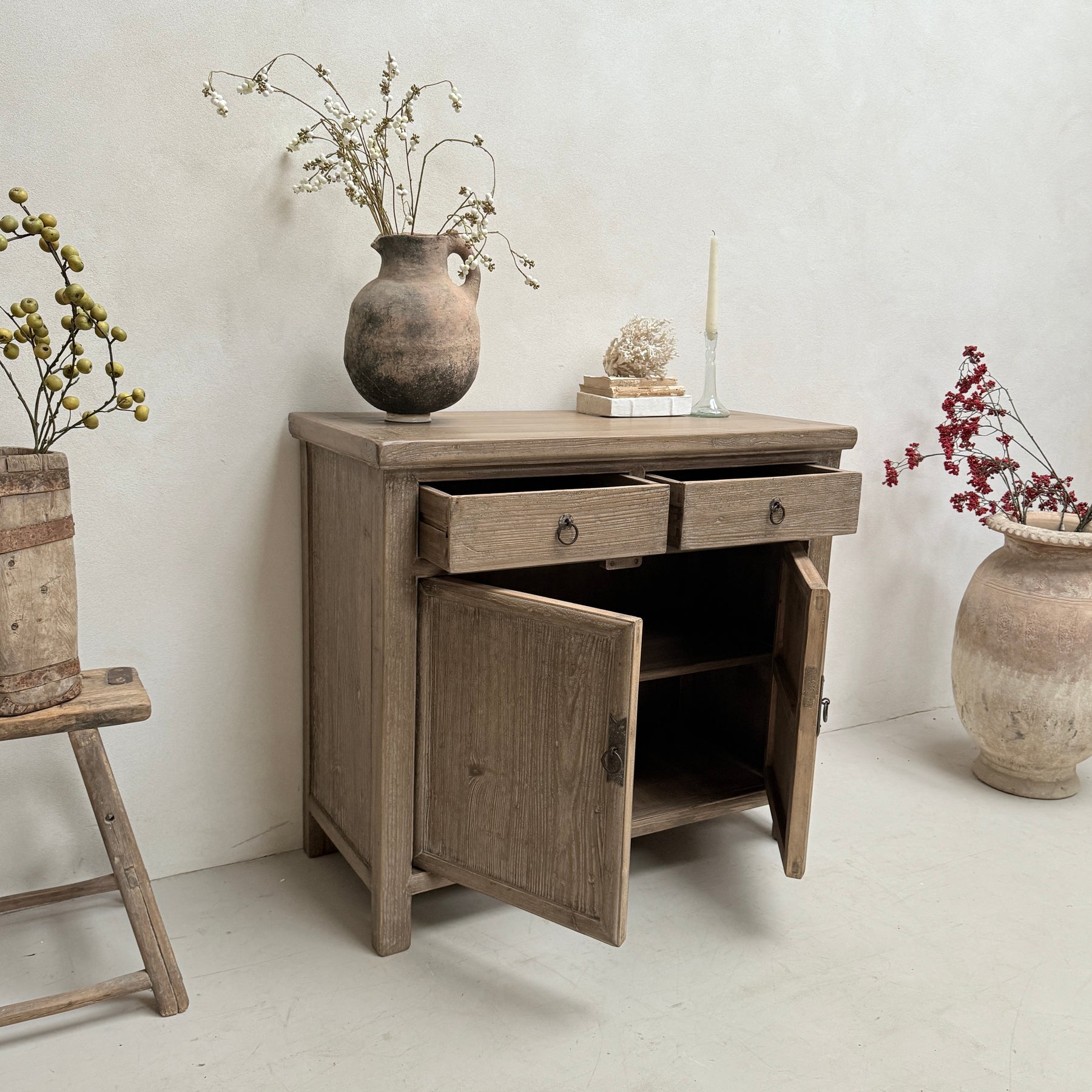 Absolutely perfect in a hallway, dining room or sitting room. This small cabinet is the perfect place to store your paperwork, magazines and stationery in your living room or dining room. This weathered wood cupboard would be ideal for displaying treasured family pictures, a lamp or decorative items.