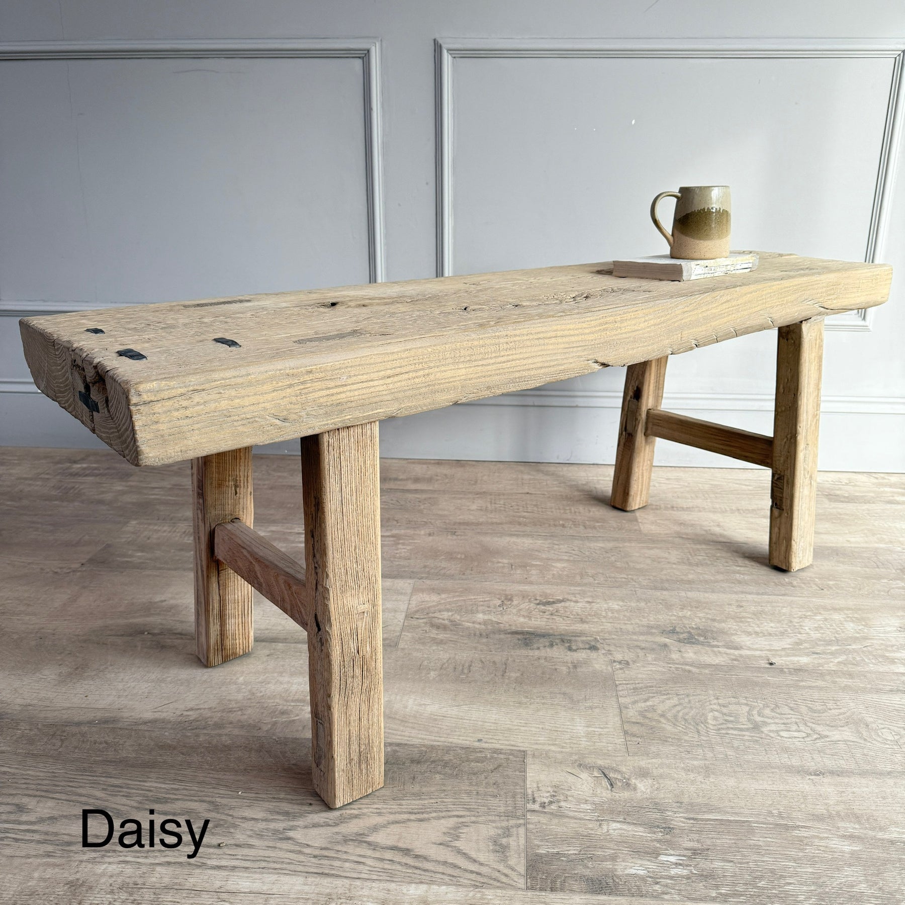 Simple, elegant and understated - our rustic reclaimed elm bench is the epitome of modern rustic design. Crafted from solid reclaimed elm, it is beautifully worn and the surface is perfectly imperfect, having the appearance of textured worn driftwood. Wonderfully rustic in finish with a fabulous worn patina, and perfect for the natural, modern rustic or minimally stylish home.