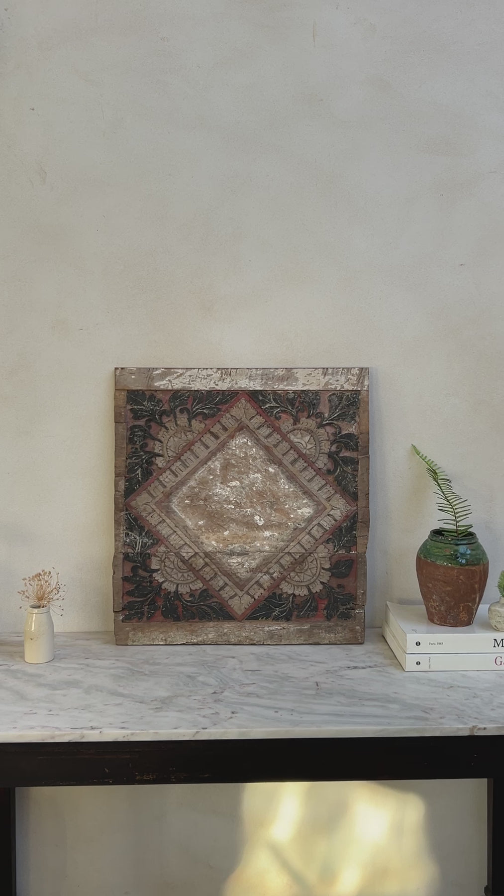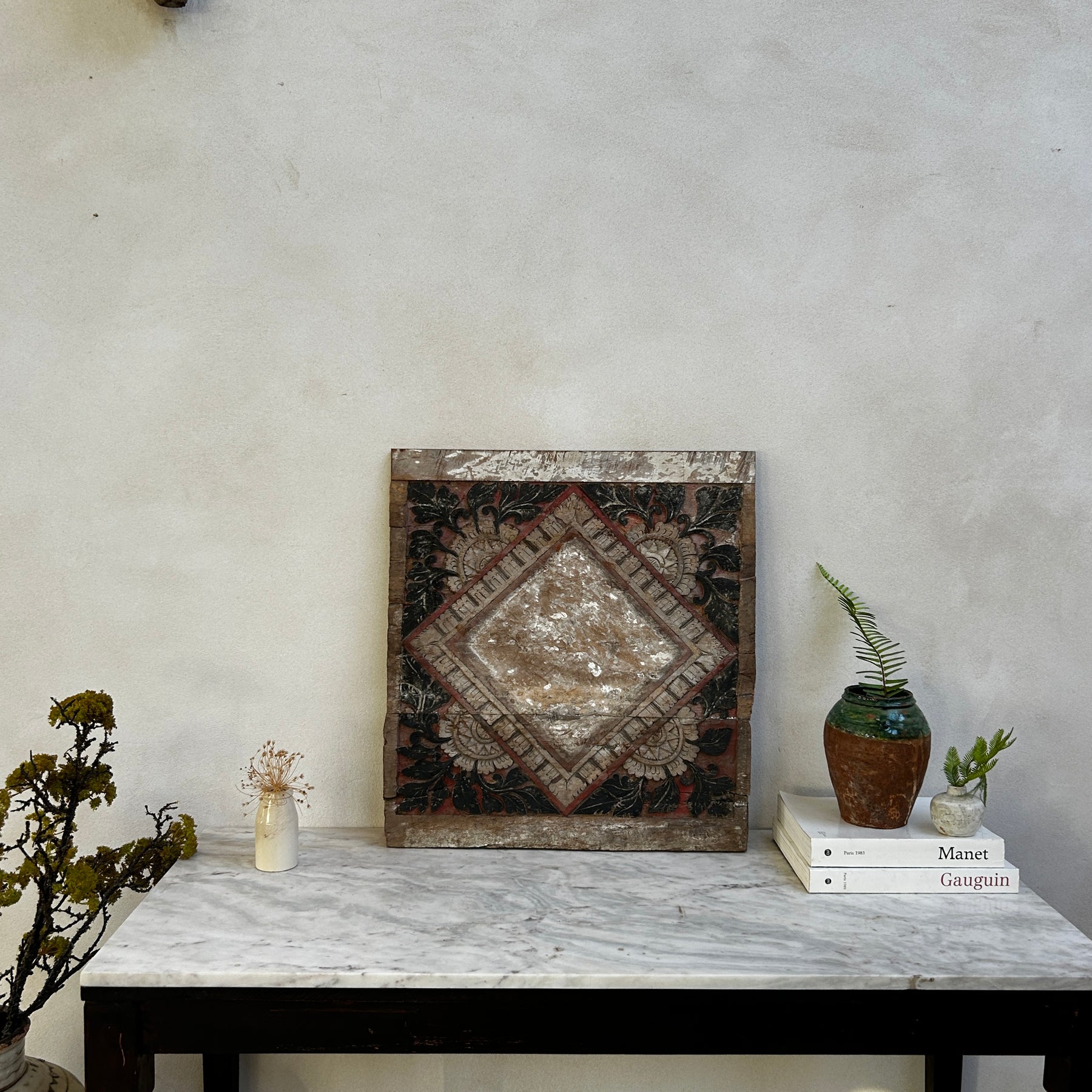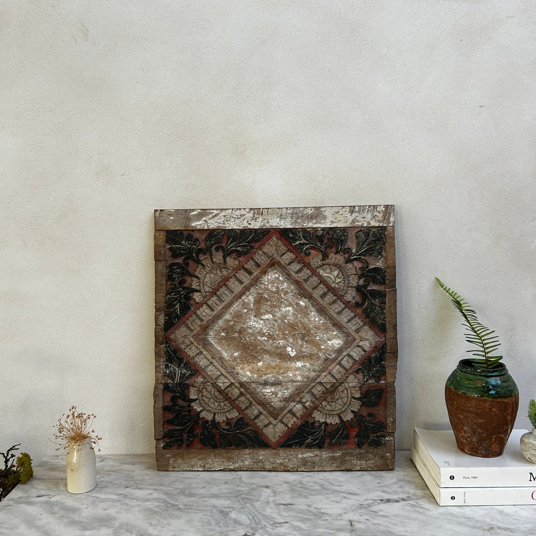 Crafted by hand in Indonesia decades ago, this rare door or window panel is a remarkable original piece. Perfect as a striking wall art feature, this historic artefact will add distinguished and unique character to any home interior.
