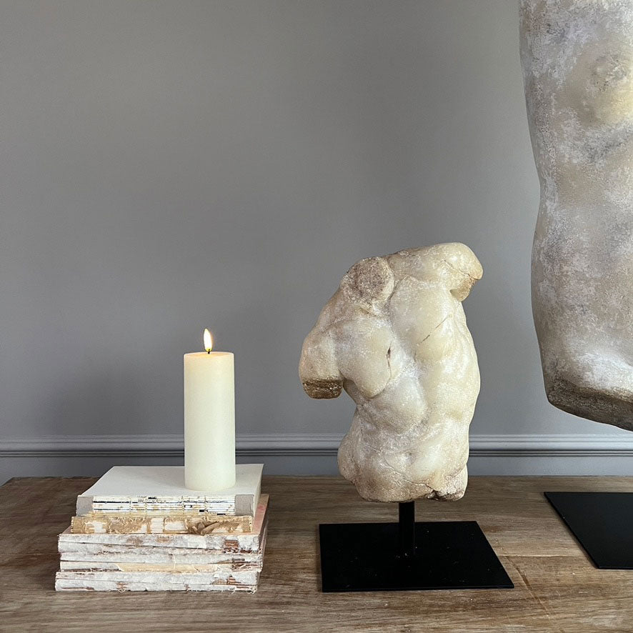 This lovely male Apollo Decorative Torso Sculpture has been mounted on a stylish metal stand. Its sculptural form is timeless and its neutral palette will work with many schemes.