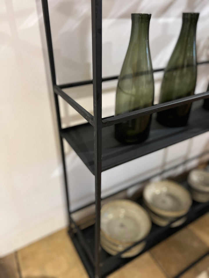 A contemporary Black Metal display shelf. Ideal for displaying plants in any setting, great as a shop display for florists, etc. It would also work in an office/study environment as extra storage.