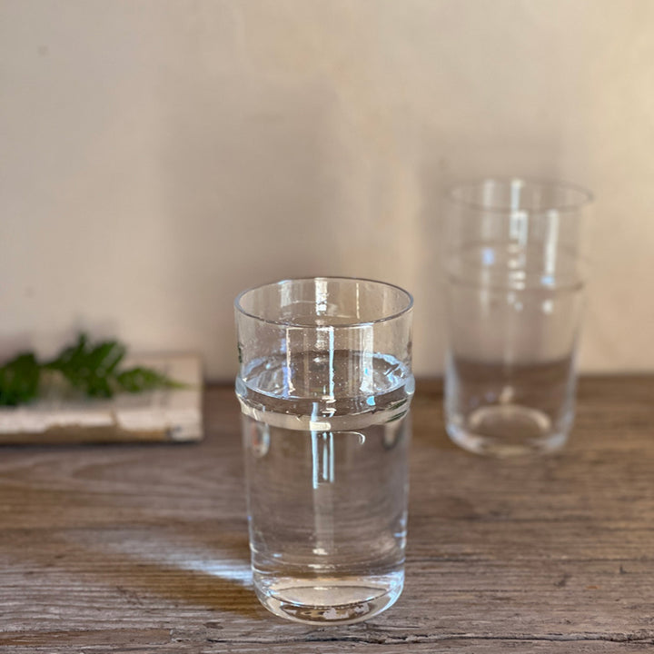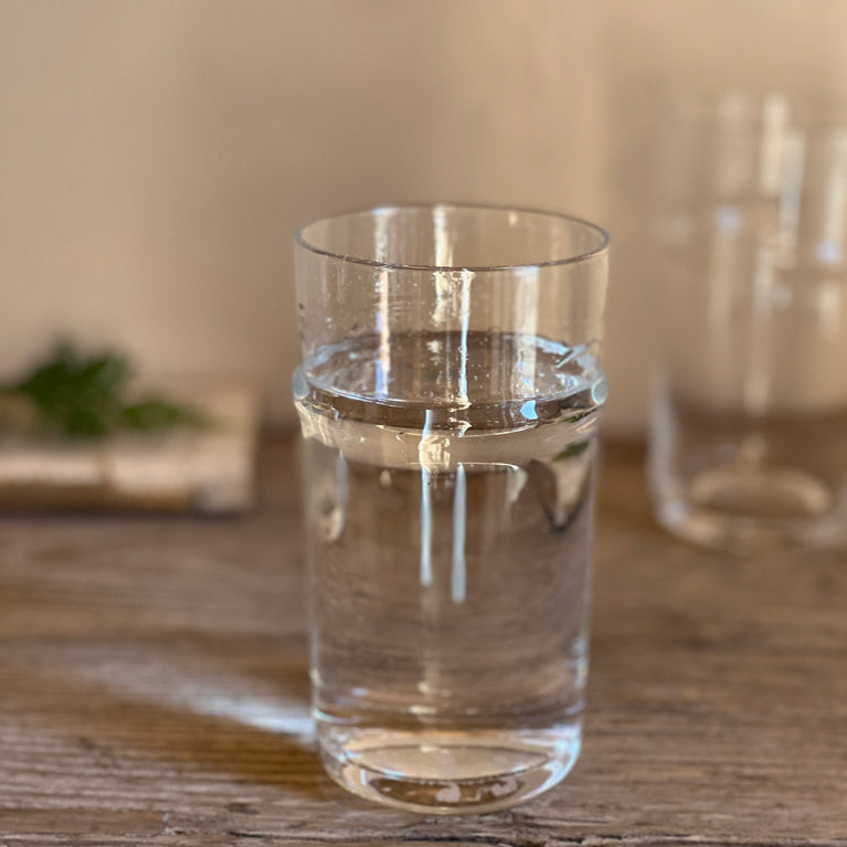 Our stunning Clear highball drinking glasses are the perfect classic tumblers for your kitchen. The glass itself has tiny bubbles inside which is a small but beautiful detail. Another key feature of this glass is the small rim that runs around the glass.