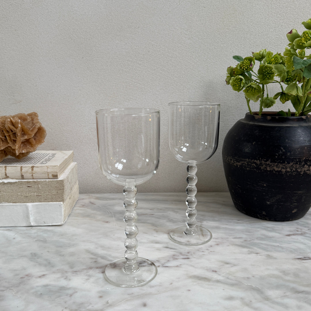 Beautiful wine glass with bobbles. This glass is the perfect (medium) size for red or white wine and is perfectly weighted for comfortable drinking.