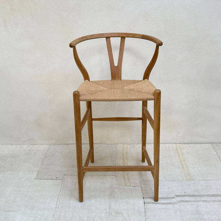 These stunning dining chairs are stylish and comfortable with a curved steam bent teake frame with a woven seat.