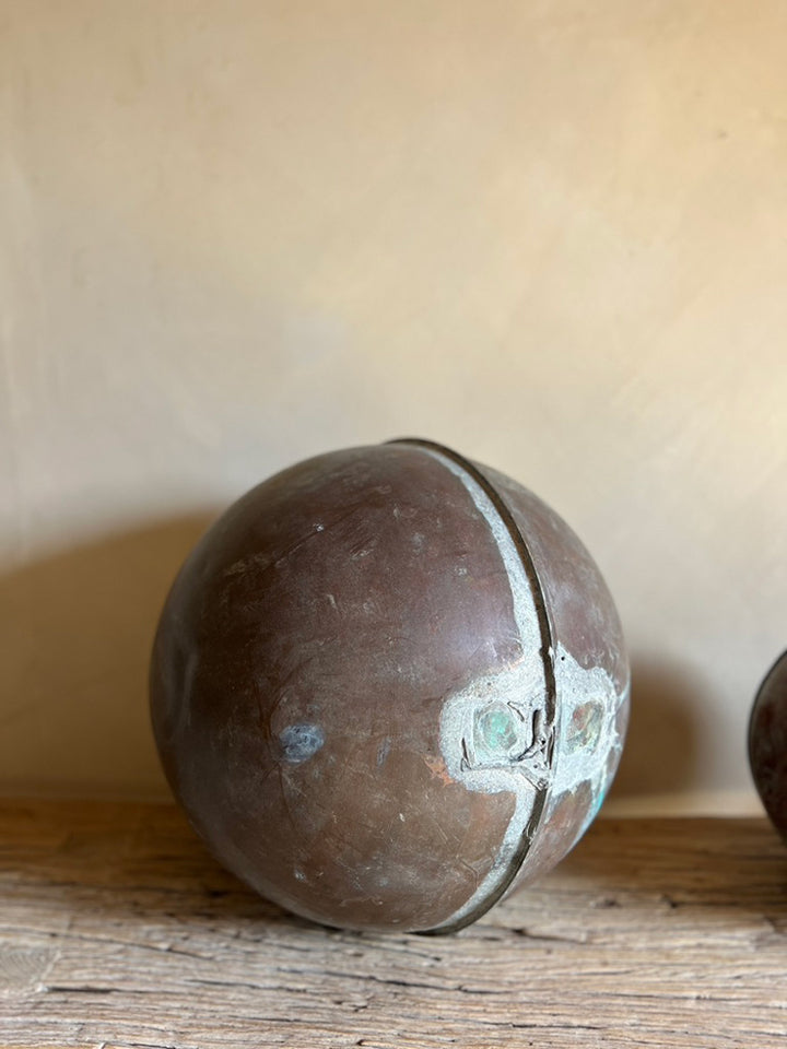 Wonderfully weathered with a stunning patina, areas of verdigris and historic knocks, dents and dings, these copper buoys would make a fabulous and unique decorative display for your home.
