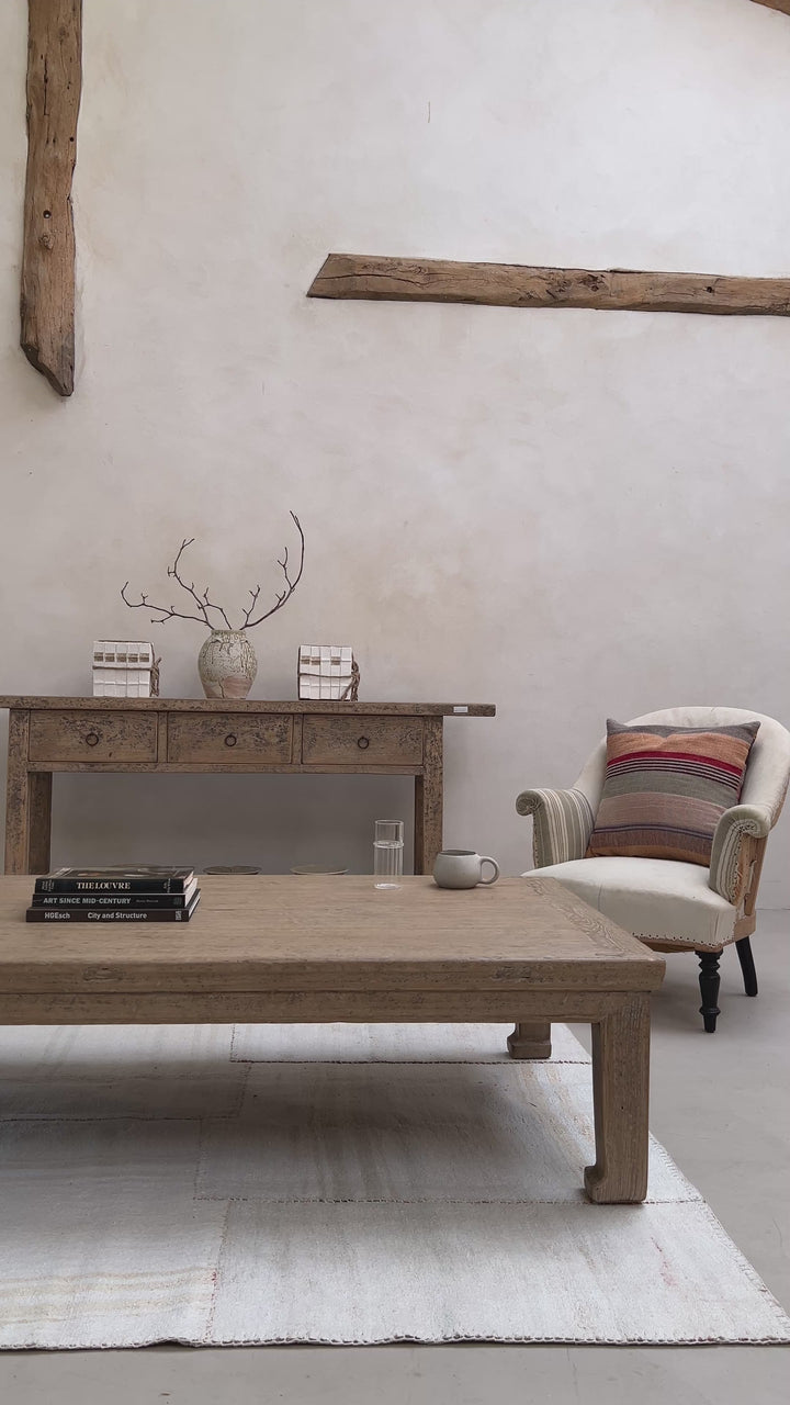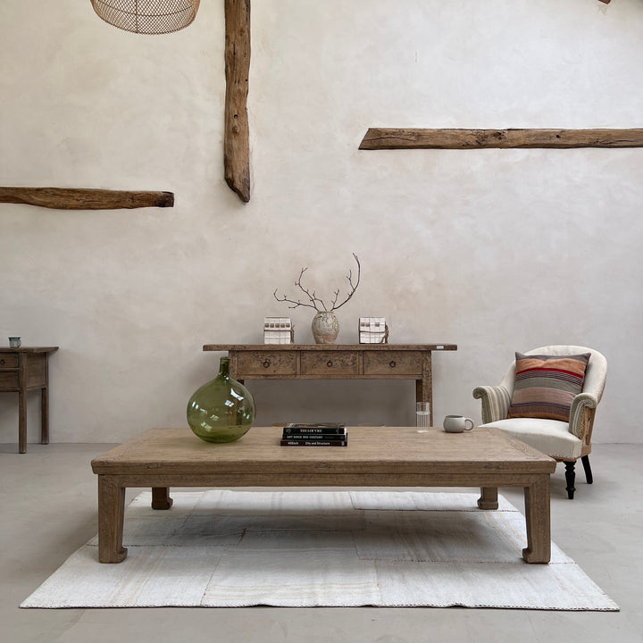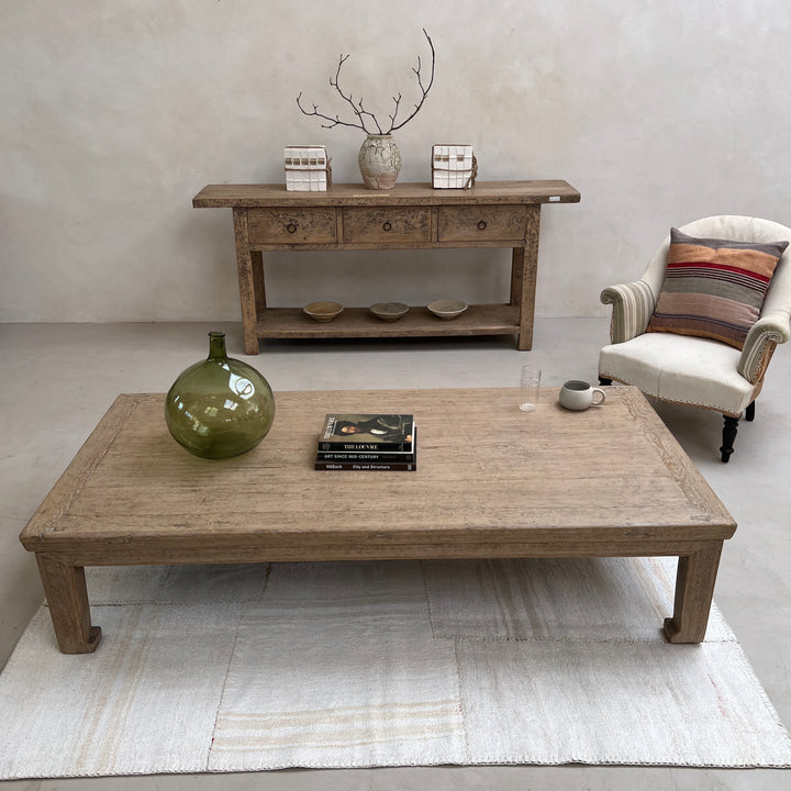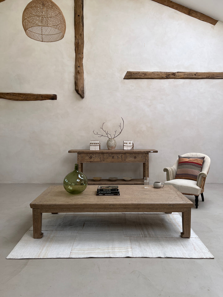 An original Kang daybed, this weathered timber coffee table is crafted from superbly aged timbers and has a stunning patina. Our coffee tables are all unique in size, shape, colour and appearance meaning that you are buying a totally one-of-a-kind unique piece of furniture.