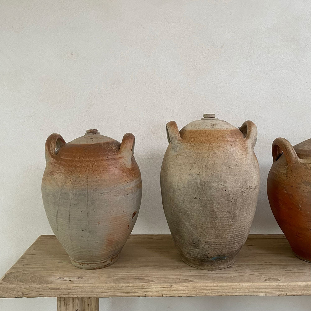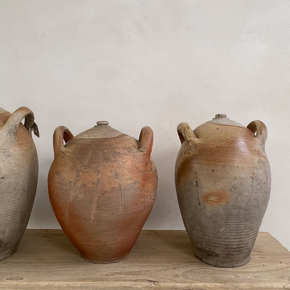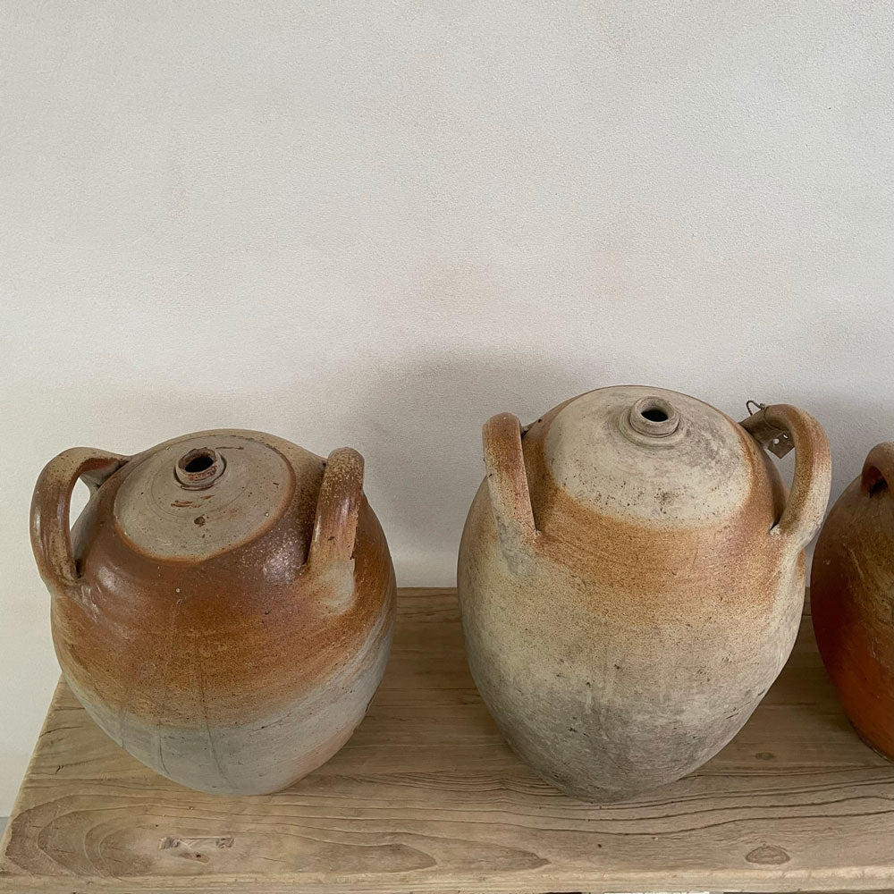 Entirely unique, and perfectly imperfect, please expect an imperfect condition, some cracks, repairs and chips. These were never created as fine pottery pieces and were handcrafted to store and carry precious supplies of drink and liquids such as olive oil.