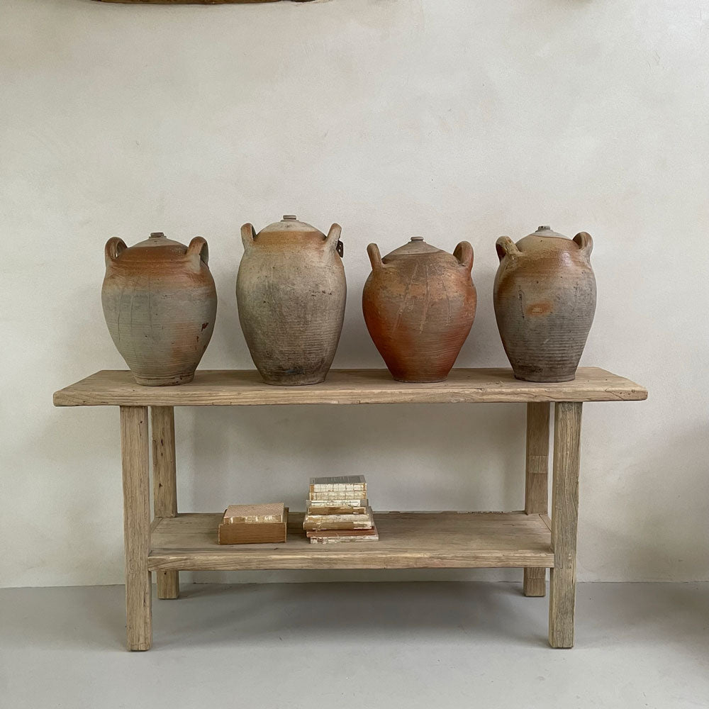 These lovely antique jugs are very sculptural. Perfect for displaying on a console table, or kitchen counter, and would also look stunning on a shelf or mantlepiece of your home.