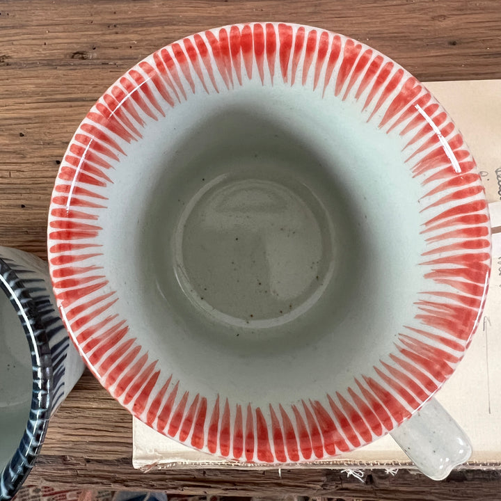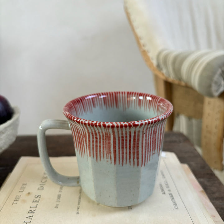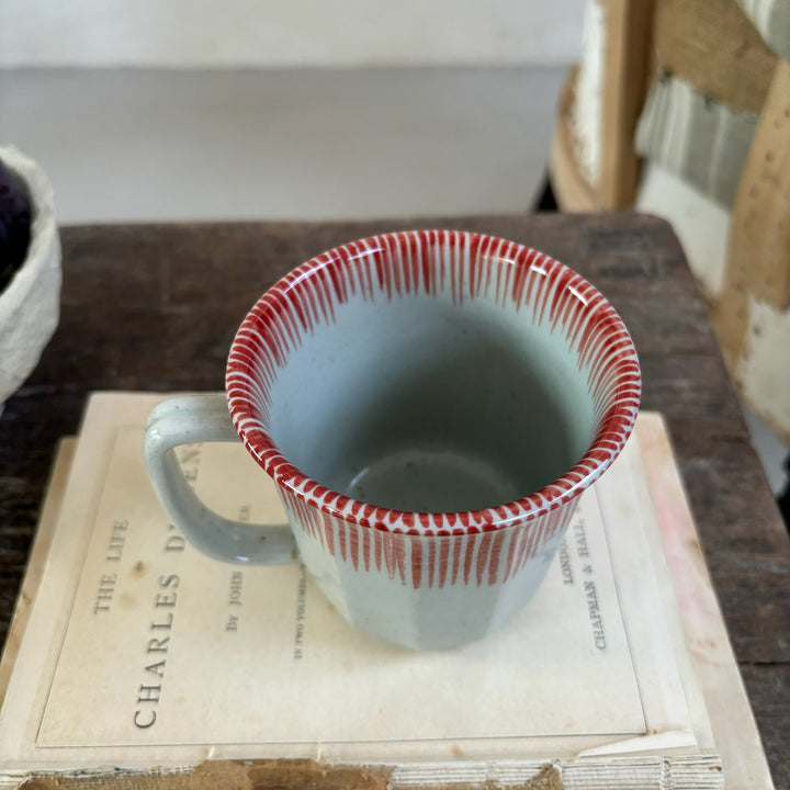With a base colour of turquoise and your choice of red or blue stripes, this ceramic mug will add a touch of fun to your morning routine. A stylish mug that looks as wonderful on the shelf as on your coffee table.