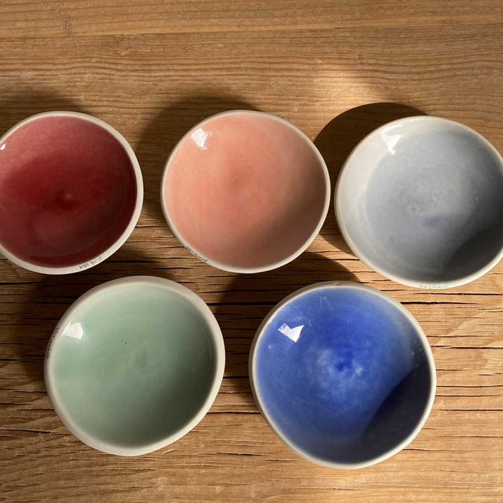 These small handmade ceramic glazed dishes are a beautifully organic shape, each with a slightly irregular edge. The glaze is applied by hand, creating subtle variations from dish to dish and making each piece unique. The dishes come in a selection of eye-catching colours and would look amazing on a dining or coffee table serving up your delicious nibbles