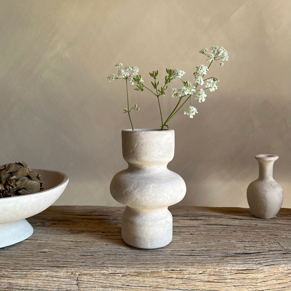 This beautiful stoneware vase has a light neutral colour and minimal texture. Perfect for your modern rustic interior home schemes.