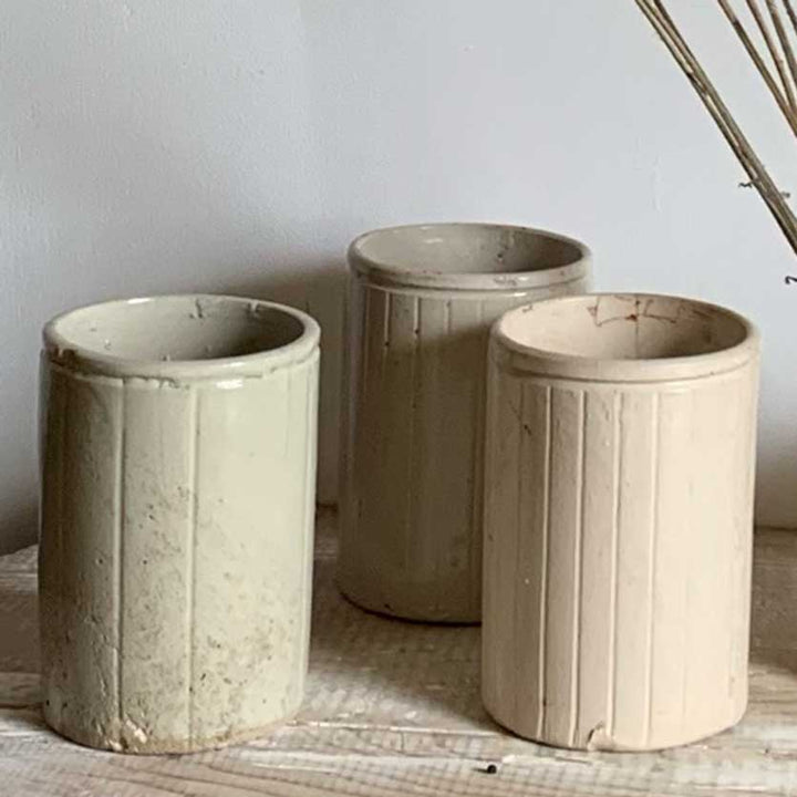 Victorian stone ware jars. These beautiful jars are dug from the ground in Victorian bottle tips. Dating from the early 1900's each one is unique and often imperfect with a crackle finish or little chips and imperfections.
