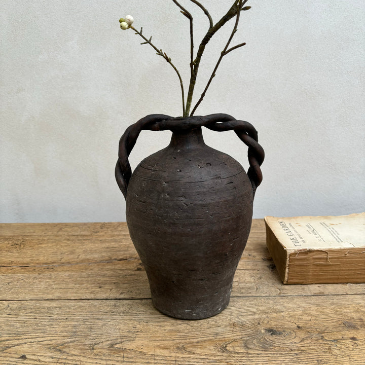 Our eye-catching twisted handle ceramic pot is fabulously tactile with stunning neutral earthy tones. Featuring a unique antique-looking patina and finish, this fantastic decorative pot is perfect for styling on console table or sideboard filled with a few of your favourite stems or simply left empty for maximum sculptural impact