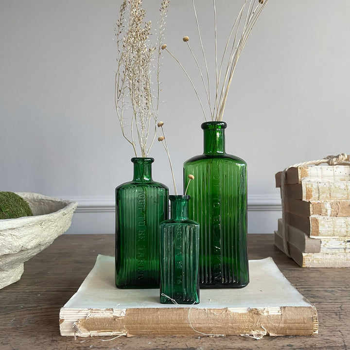 We would use these historical glass bottles as vases for foraged stems. However, they would also work as decorative items in your home, a small collection of different shapes and sizes would look wonderful. Take this as your sign to begin collecting.