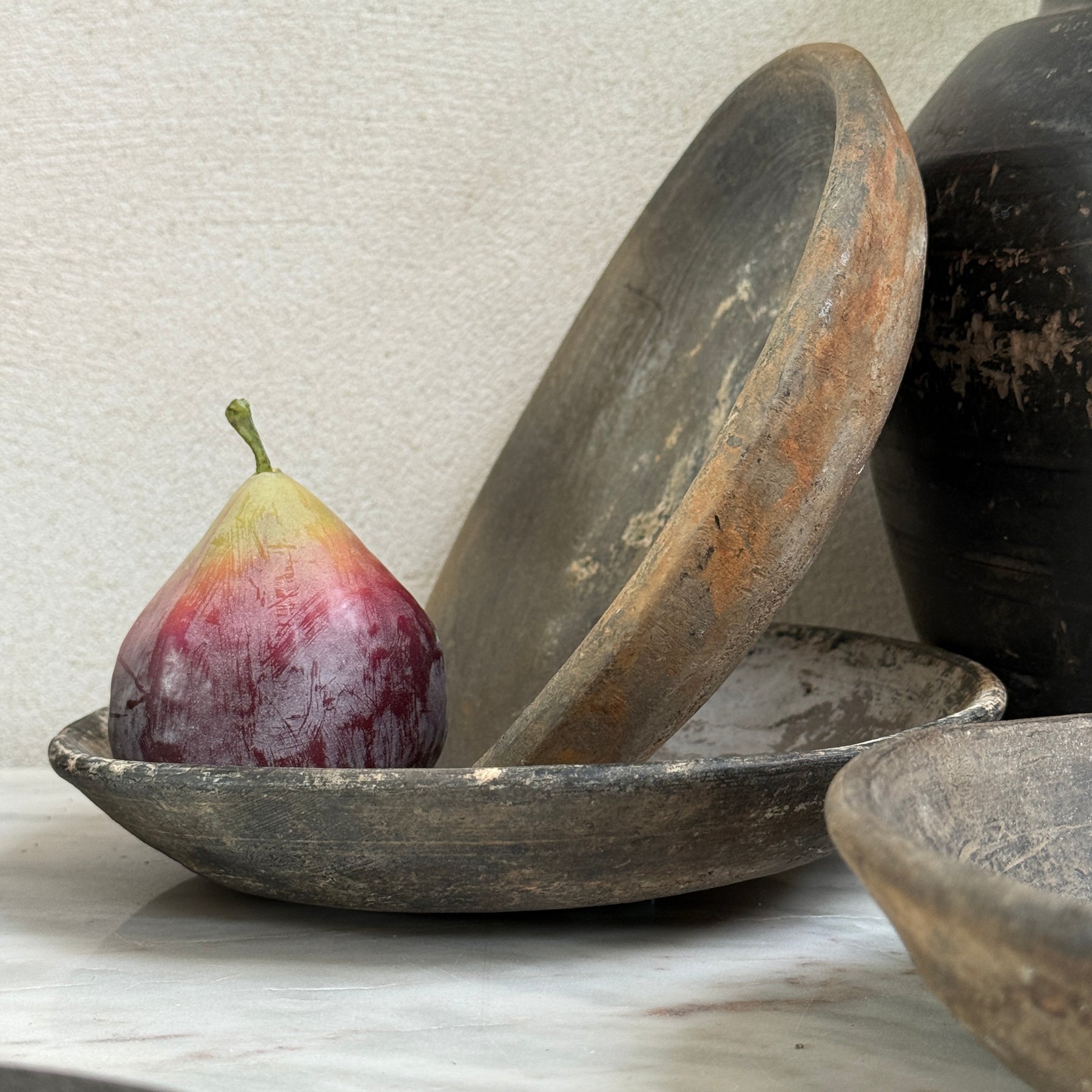 This small antique clay plate is a charming historical piece once used in kitchens over a century ago. Its rustic character and unglazed matte surface reveal signs of age and authentic wear, preserved without cleaning to maintain its original patina. Despite its imperfections, this unique plate stands out as a beautiful decorative accent, reflecting genuine vintage craftsmanship and history.