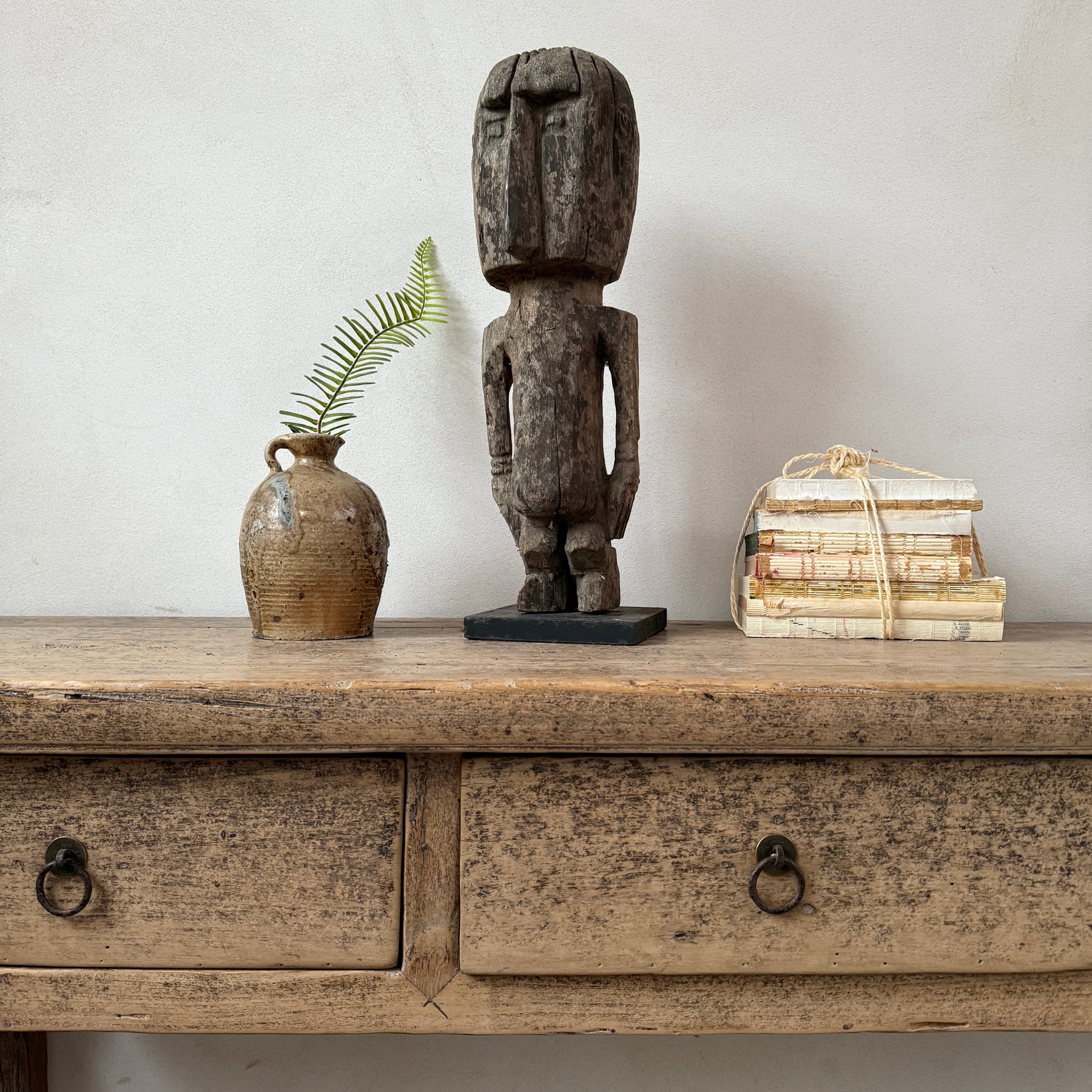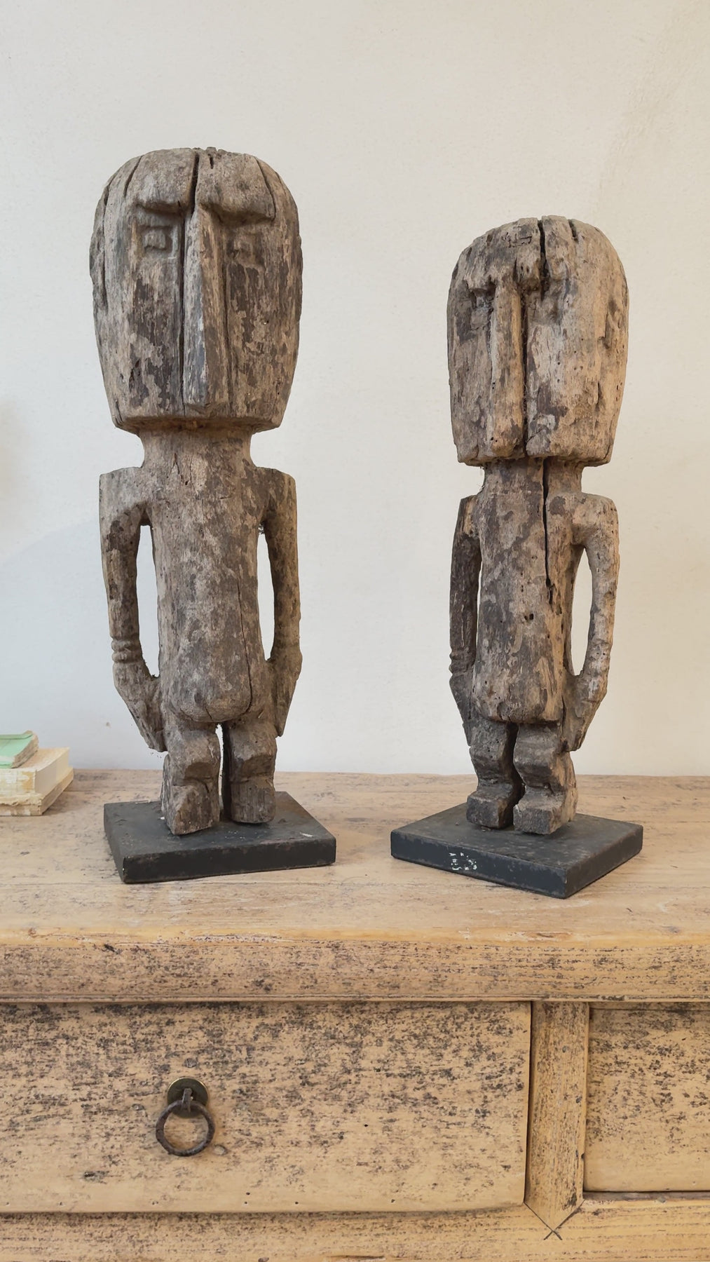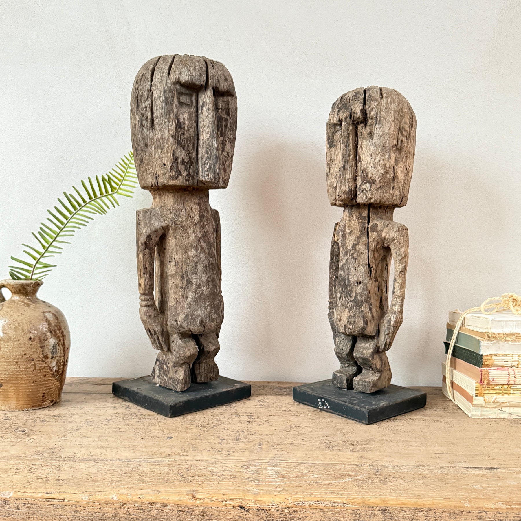Hand-carved from a single piece of wood, our Antique Wooden Sumba men statues brings timeless character to any room. Each figure is sculpted from beautifully aged wood, displaying a distinctive weather-worn patina that speaks to its heritage. The simplistic yet sculptural form celebrates traditional craftsmanship, making it an ideal focal point for shelving, mantels, or display cabinets. Perfect for collectors of artisanal pieces or anyone seeking to introduce rustic-luxe warmth to their home, this statue pairs effortlessly with vintage furnishings and eclectic interiors. A conversation starter that honours authentic materials and time-honoured carving techniques.