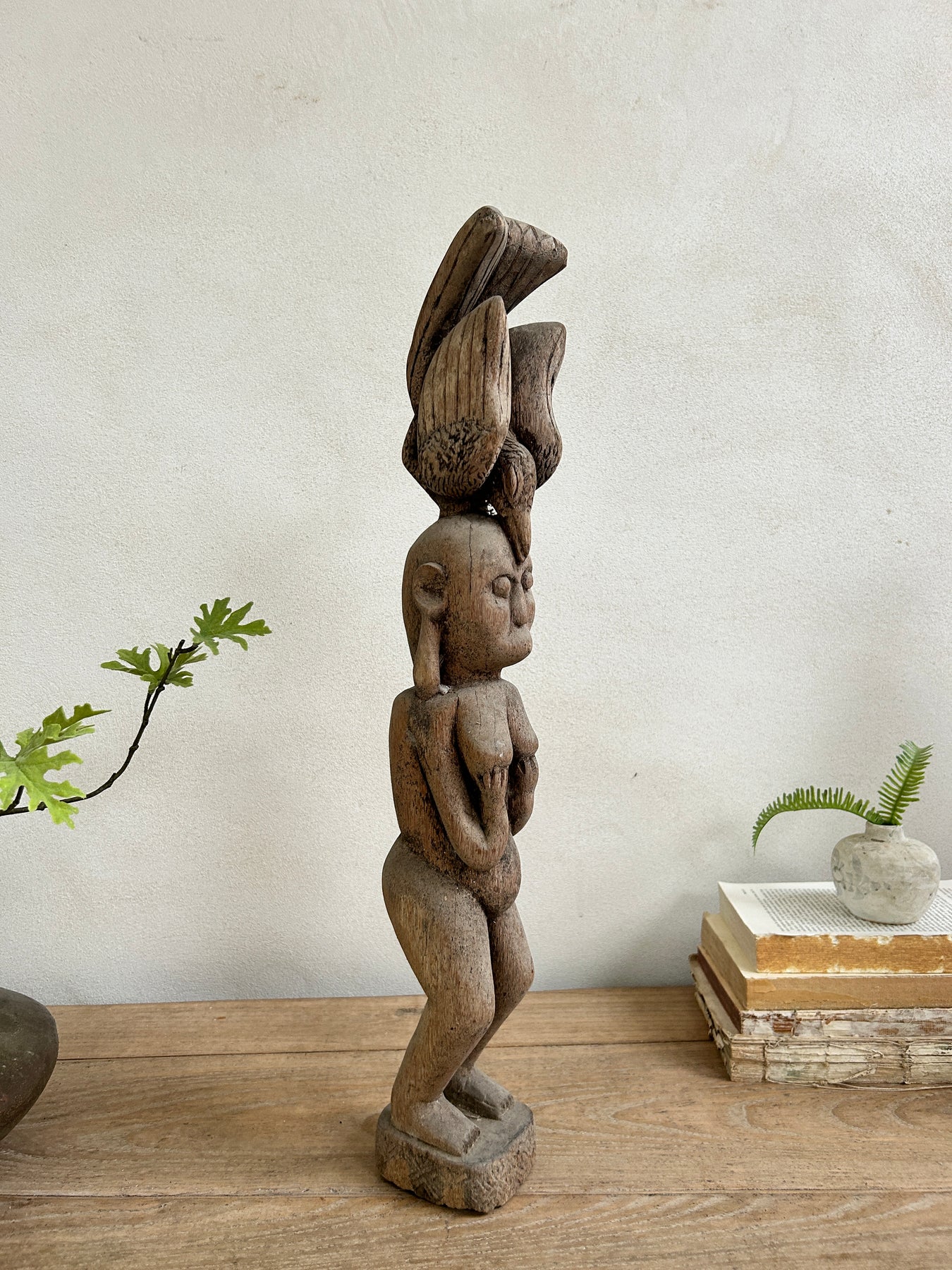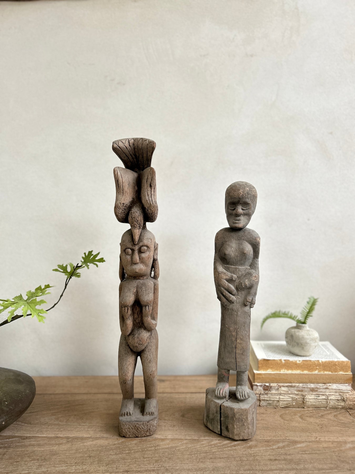 Hand-carved from a single piece of wood, our wonderful antique wooden Sumba statues will add unique character to any space.