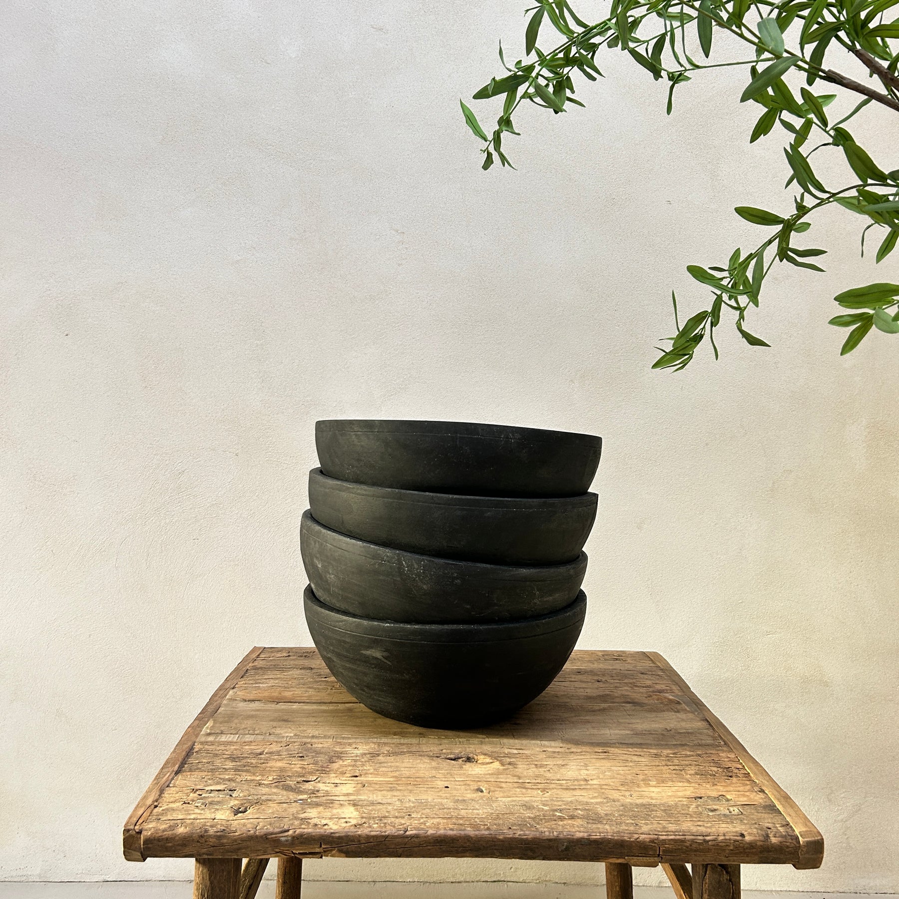 The smooth, rounded form and dark finish highlight the natural beauty of the wood while bearing the subtle marks of skilled craftsmanship, giving each piece a unique character.
