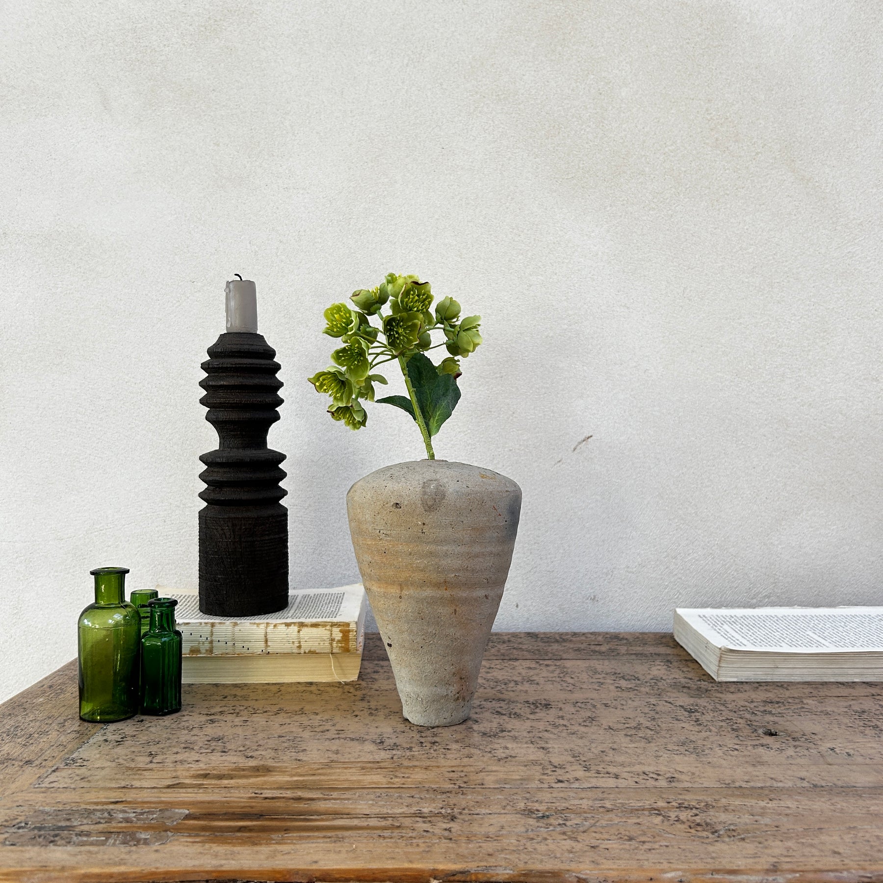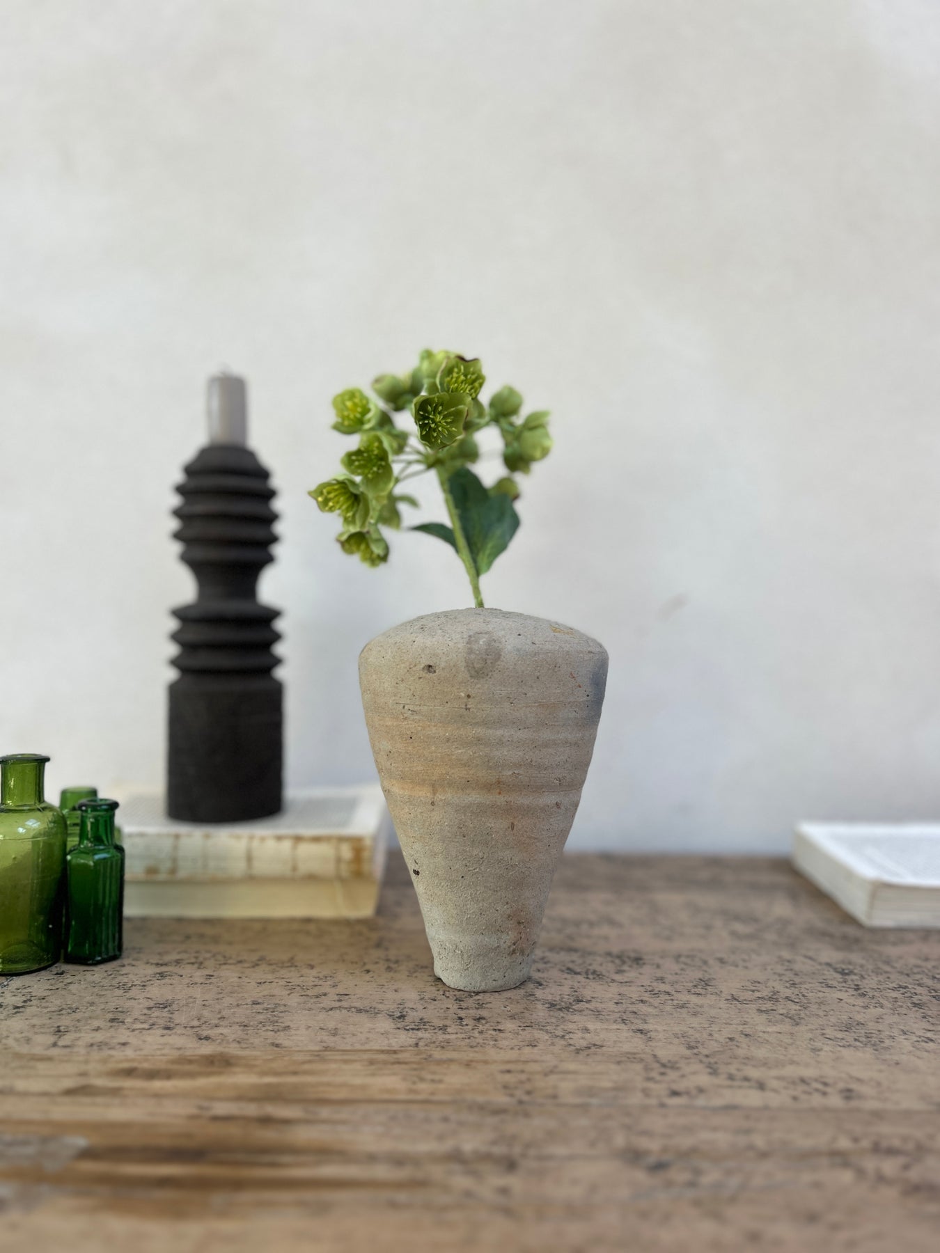 The soft, pale clay and pared-back silhouette give the vessels a surprisingly contemporary presence, sitting comfortably within minimalist, wabi-sabi or curated modern interiors. Displayed singly as a sculptural object or grouped together, they introduce texture, history and a quiet sense of archaeological poetry to a space.