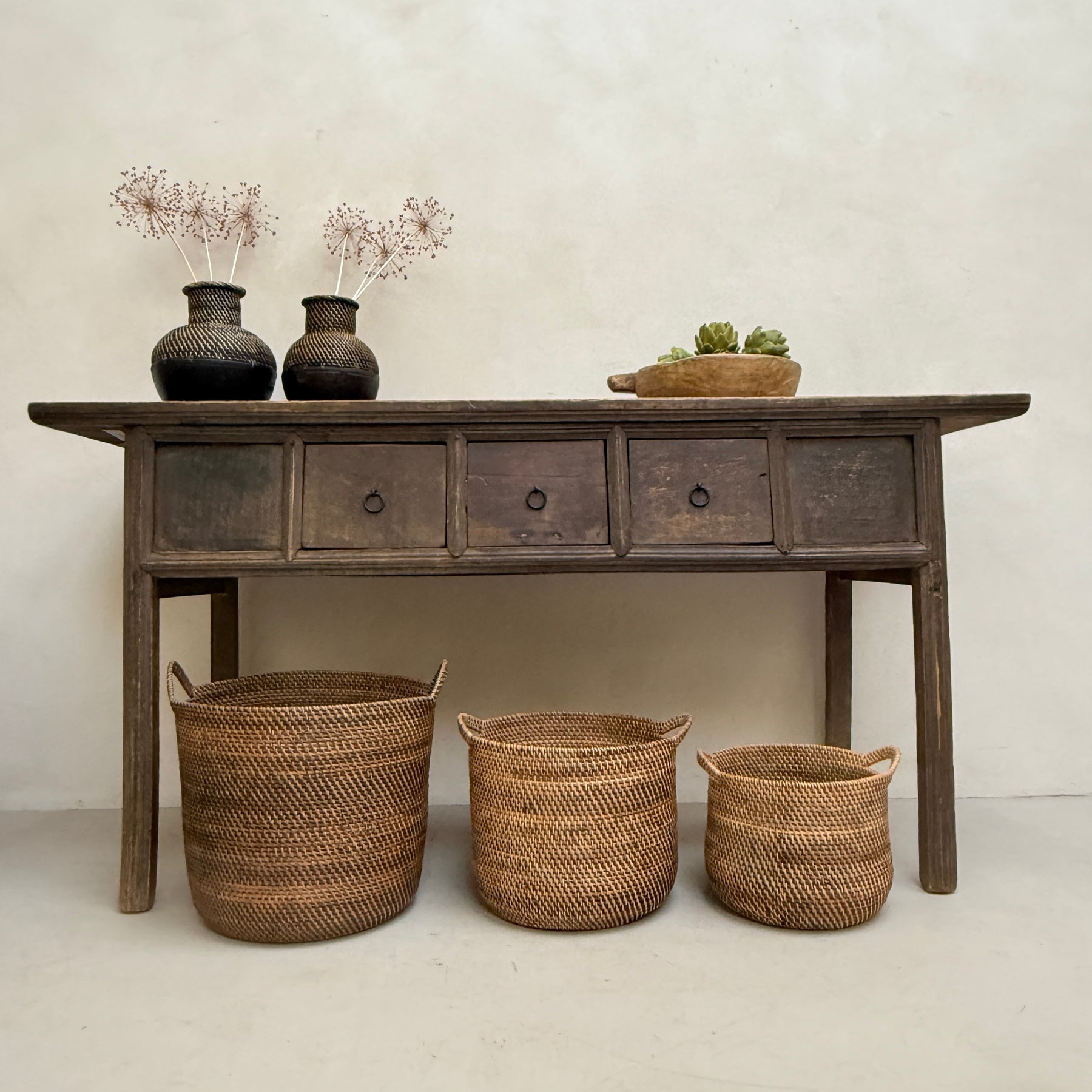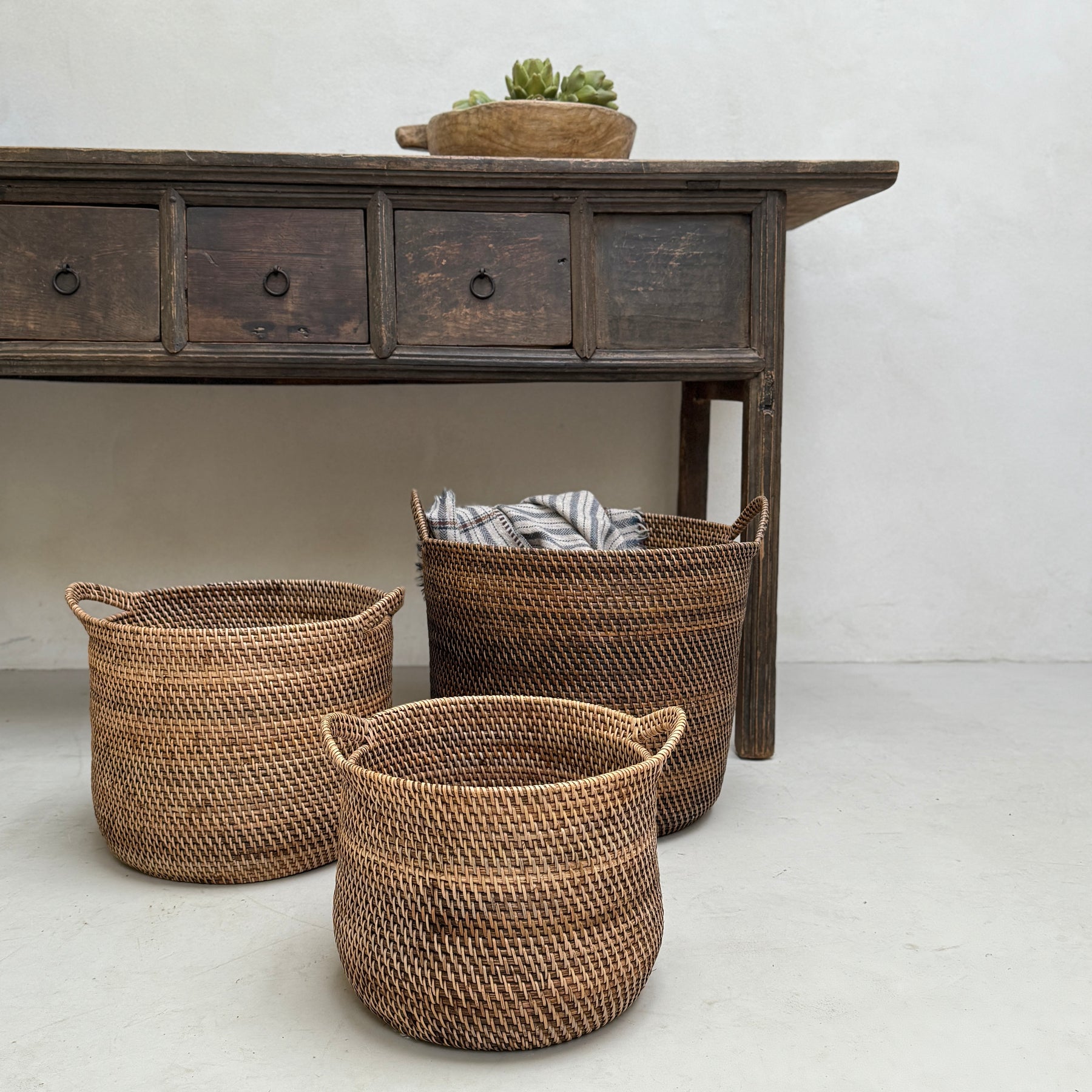 Our fabulous handmade rustic handwoven round baskets are perfect for so many purposes around the home. They can be used for storage, simply displayed on their own or made into a feature by placing plants, holding blankets or storing logs by the fireside.