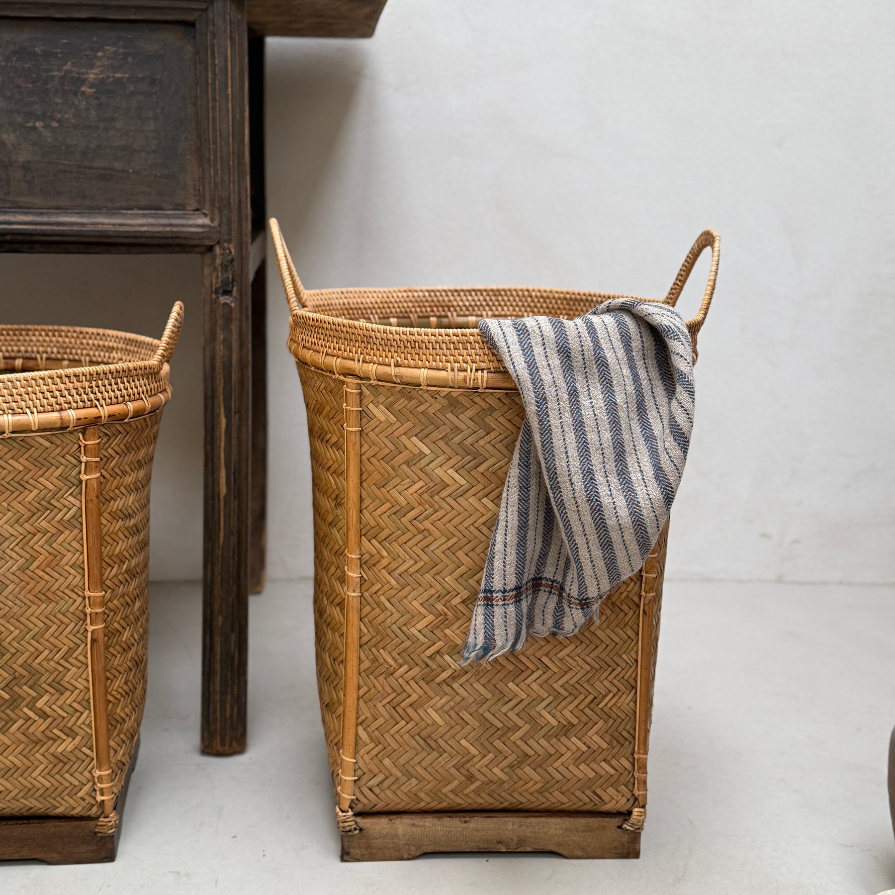 Our fabulous handmade rustic woven bamboo baskets are perfect for so many purposes around the home. They can be used for storage, simply displayed on their own or made into a feature by placing plants, holding blankets or storing logs by the fireside.