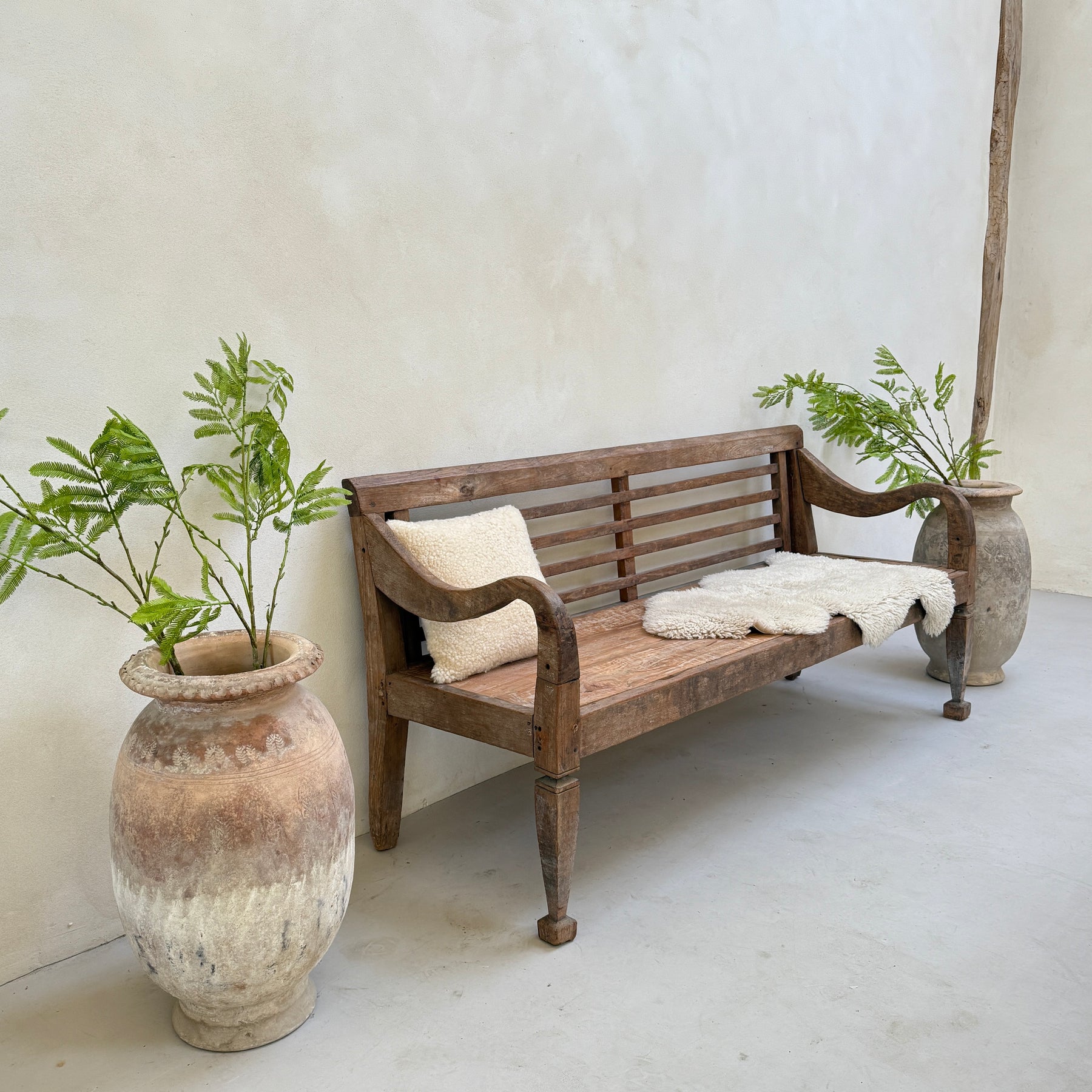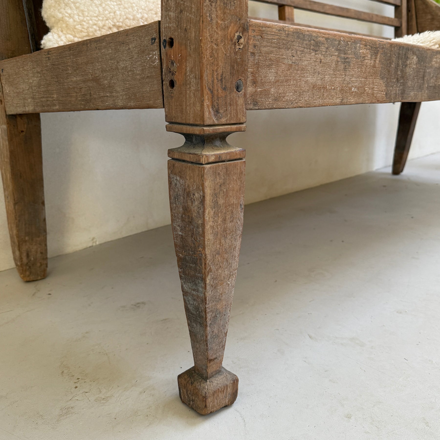 A superb large and deep bench build by hand for comfort over 100 years ago.