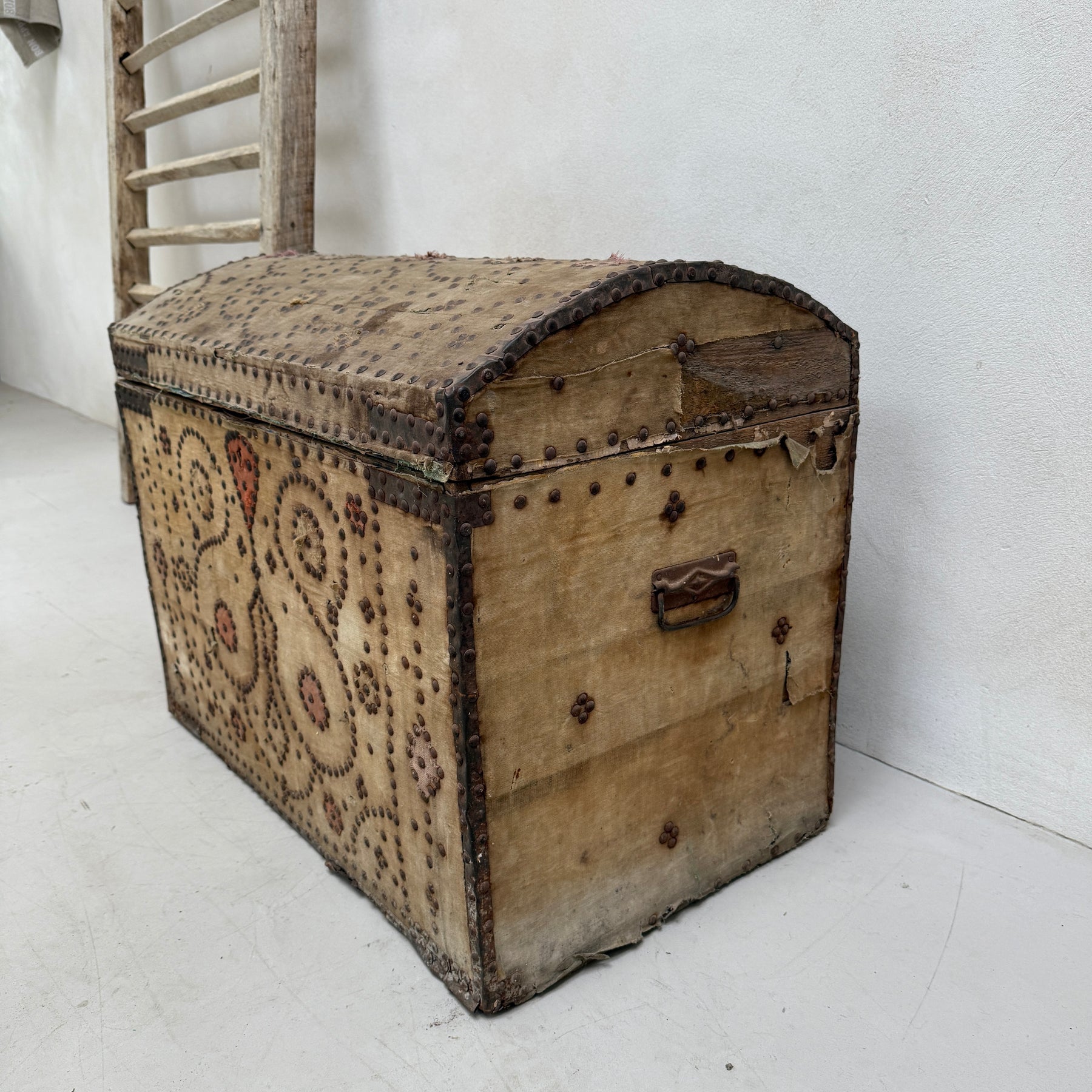 A unique Ottoman empire travel trunk dating from 100 years ago. Used to pack possesions to travel along the silk route this box may have contained clothes or treasure and would likely have been carried by hand cart or camel accross the spice trail.