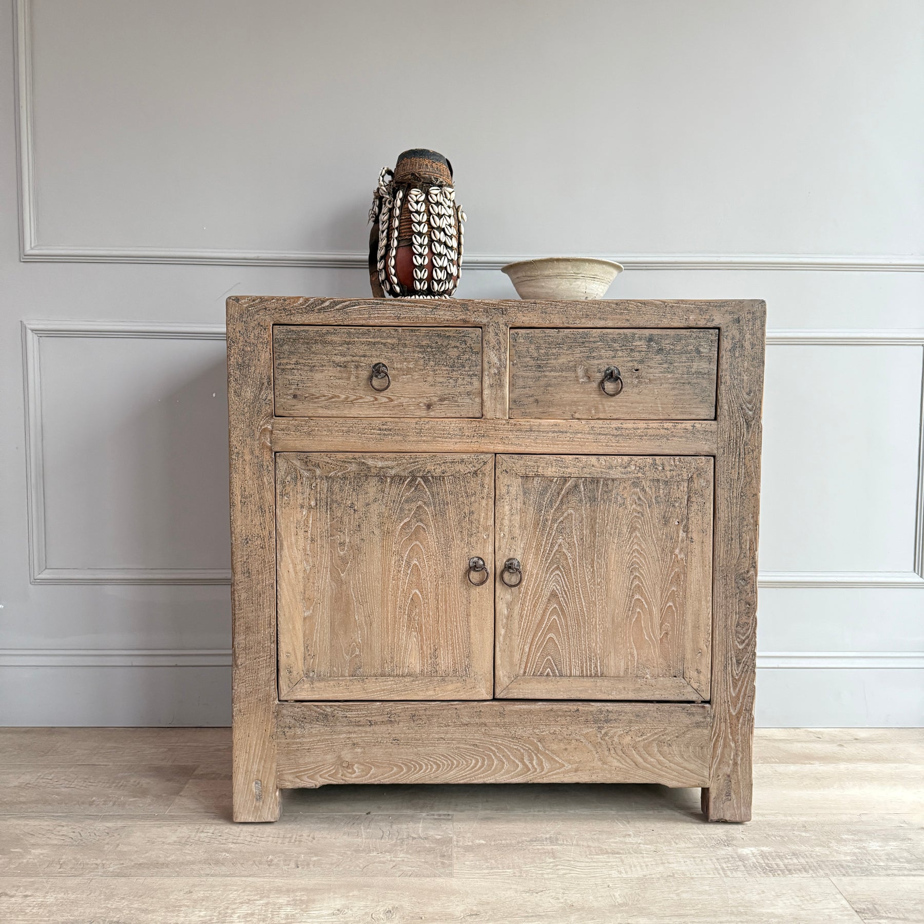 A truly original antique elm cupboard that brings timeless elegance to compact living spaces. With two cupboard doors, two drawers, and an internal shelf, this characterful piece offers practical storage for documents, magazines, and everyday items whilst maintaining a refined presence in hallways, dining rooms, or sitting areas.