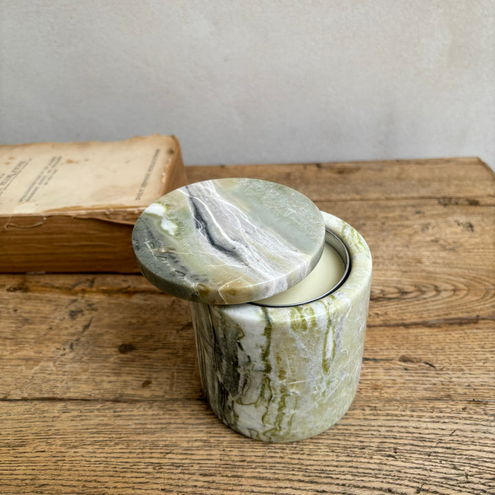 Experience the perfect blend of invigorating blood orange and refreshing grapefruit with our Marble Scented Candle. Each vessel is uniquely beautiful with green shades and natural marbling, making it a one-of-a-kind addition to your home decor. Indulge in a delightful scent and add a touch of sophistication to any room.