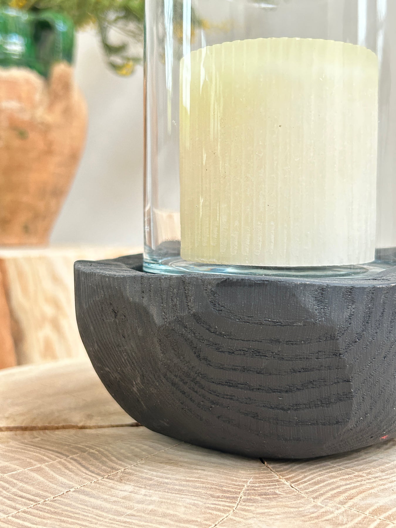 Small hurrican yakisugi wooden lantern