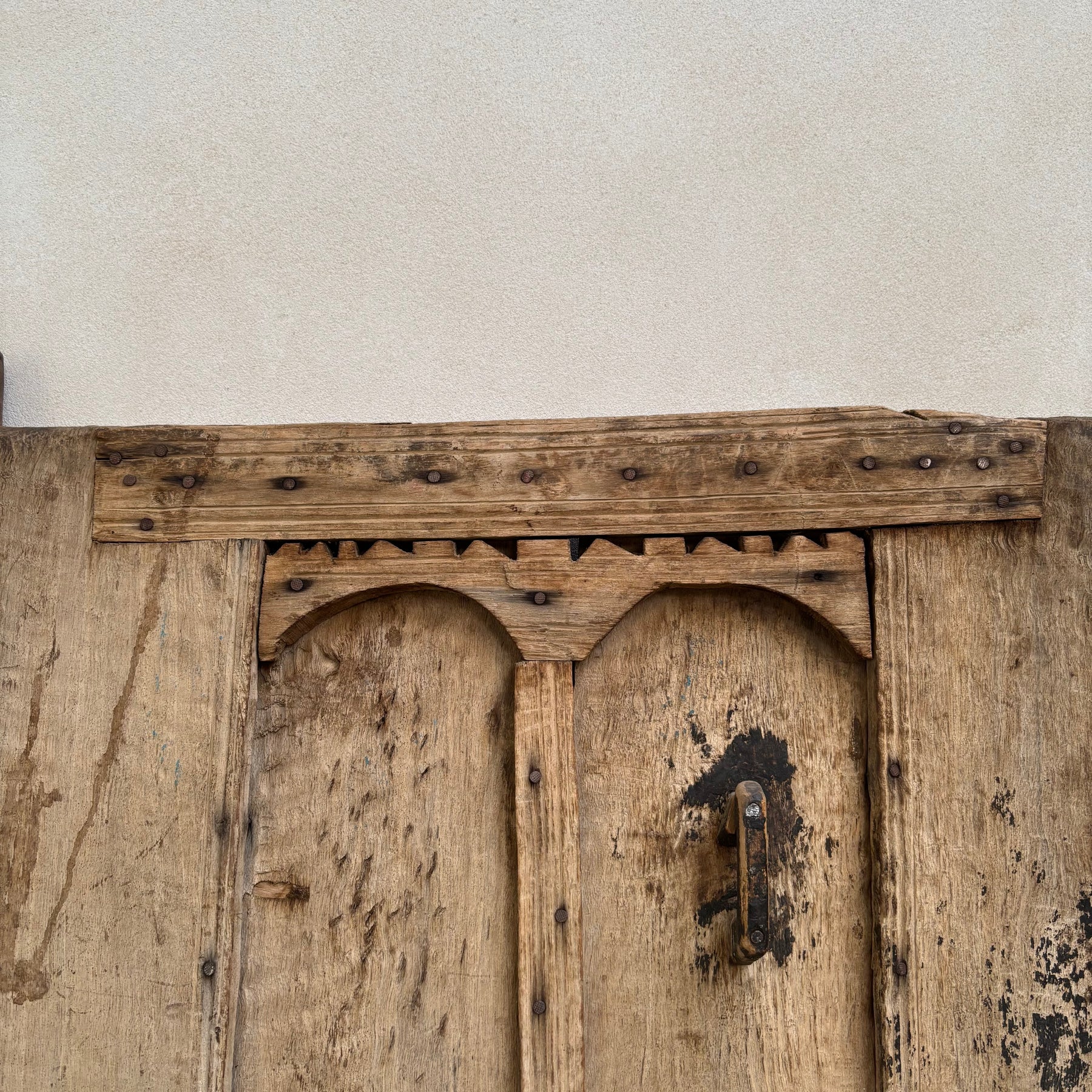Perfect for repurposing as a bespoke headboards, or cabinets door.  This door would have originated from an old farm, with the wood expertly carved to custom fit a window opening, showcasing exceptional Moroccan craftsmanship.