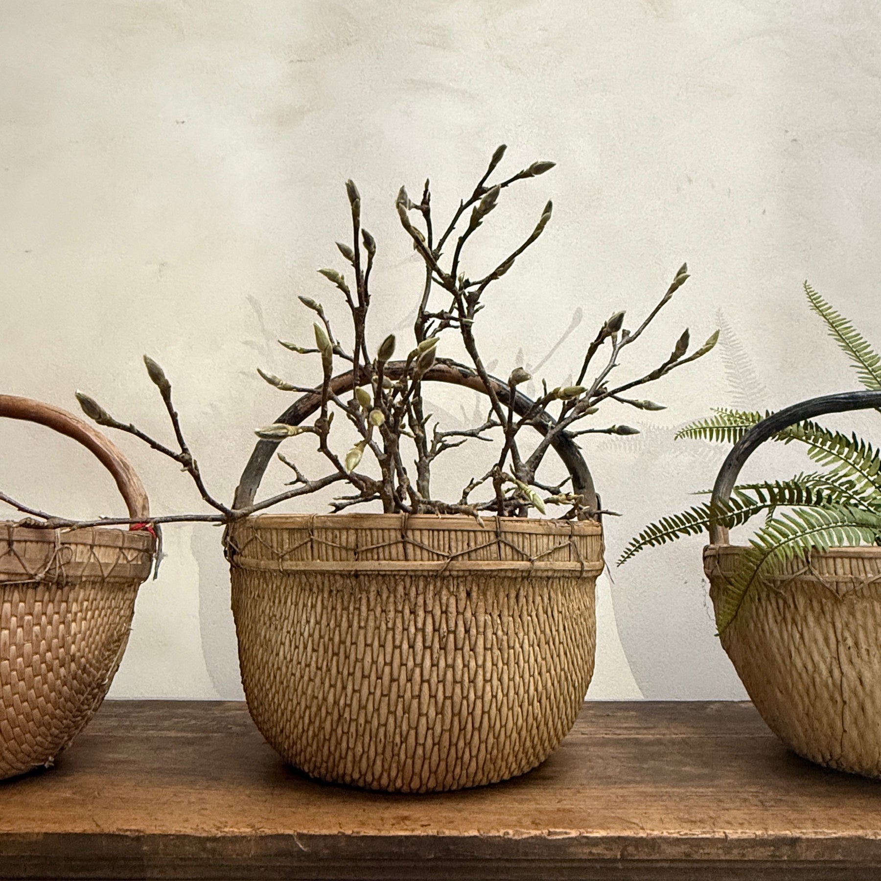 These characterful antique round woven market baskets are perfect, not only for collecting your precious garden harvest, but also ideal storage vessels for kitchens, bathrooms and utility rooms.