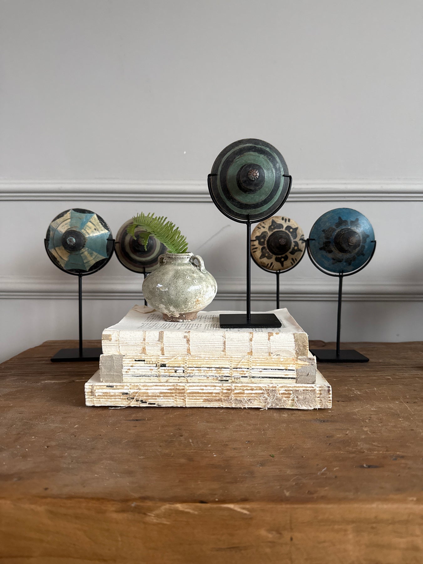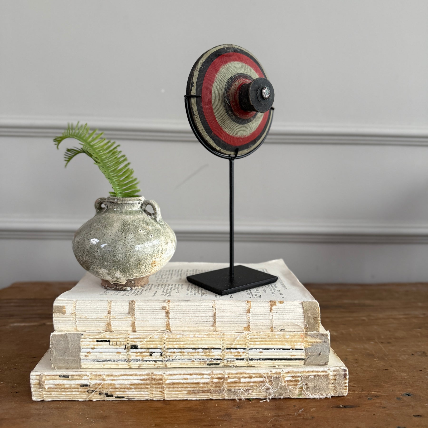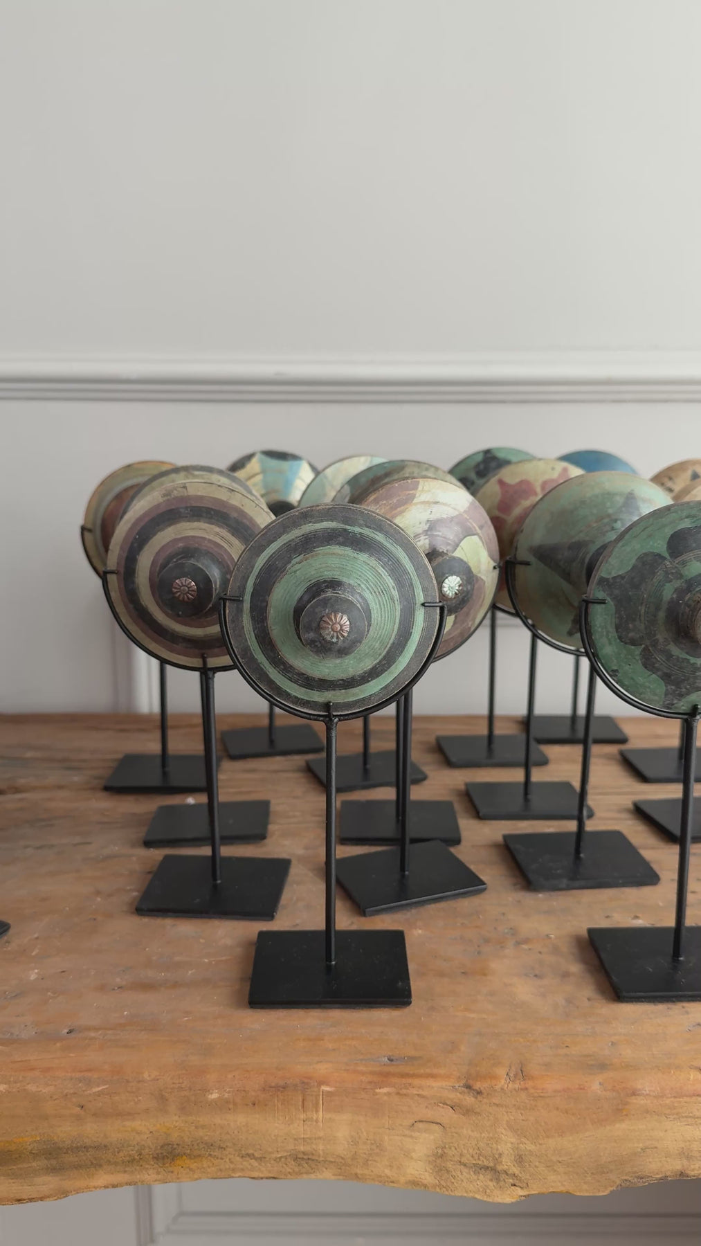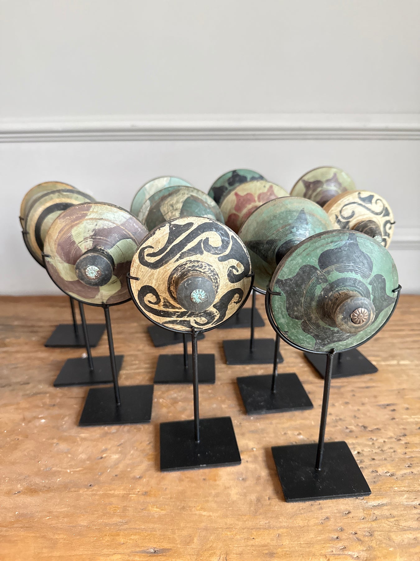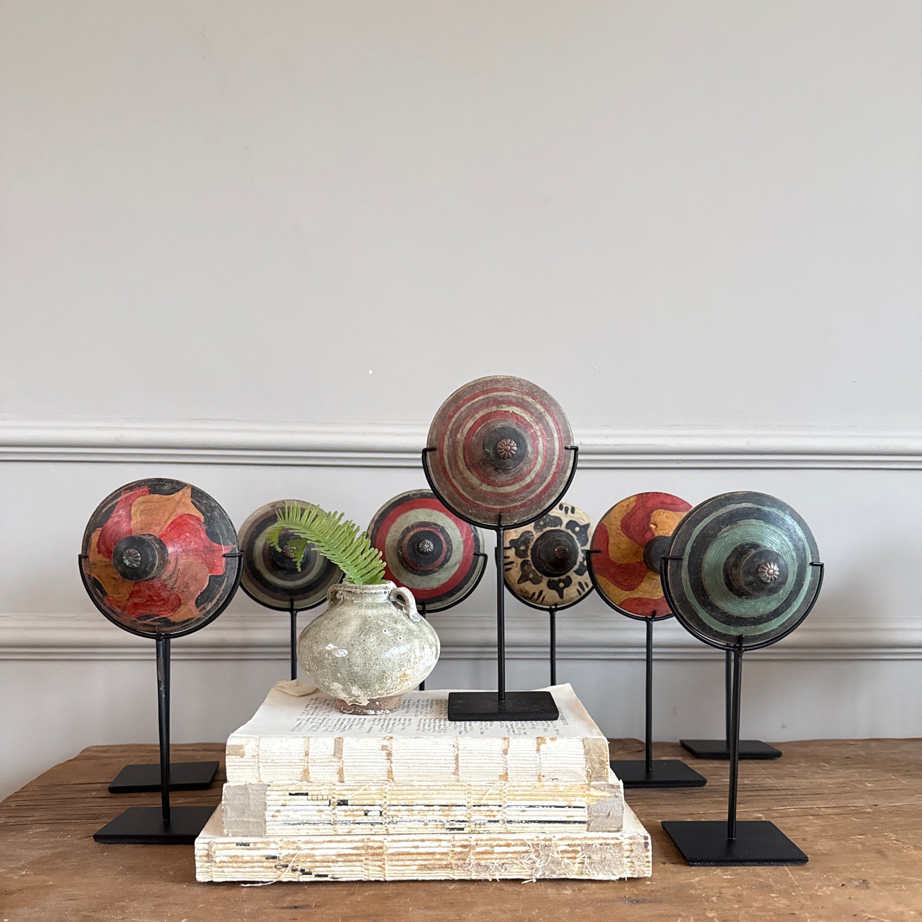 Each of our antique spinning tops is a work of art and a piece of social history.  Found in Indonesia, these spinning tops would have been used to play in gardens and yards across the globe.