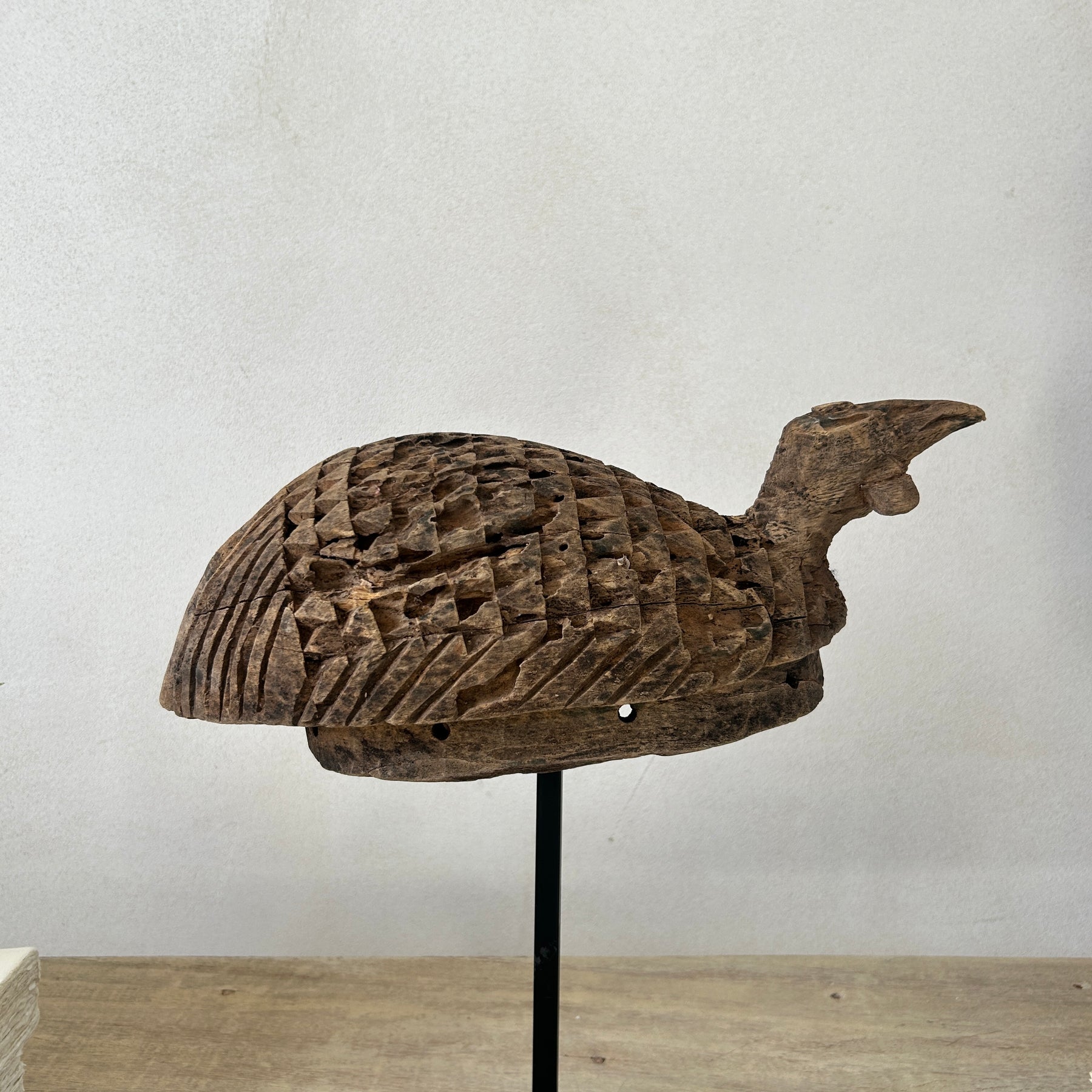 Primitiviely hand carved from a single piece of hardwood this item is a one of a kind antique over 100 years old.