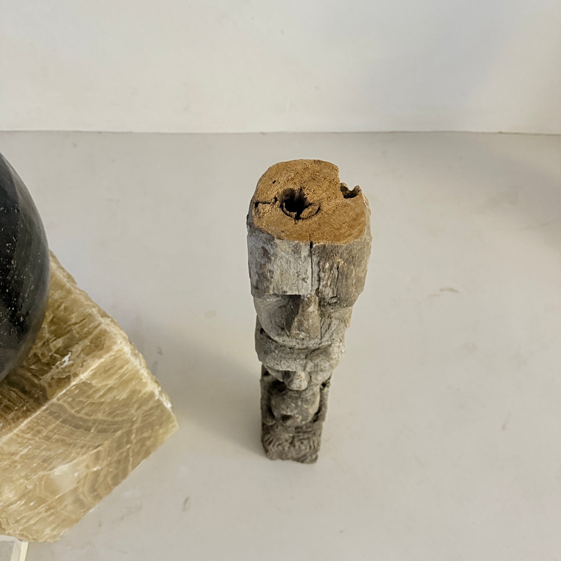 Simplistic and sculptural in form, each figure is carved from beautiful aged wood and displays a stunning weathered patina.