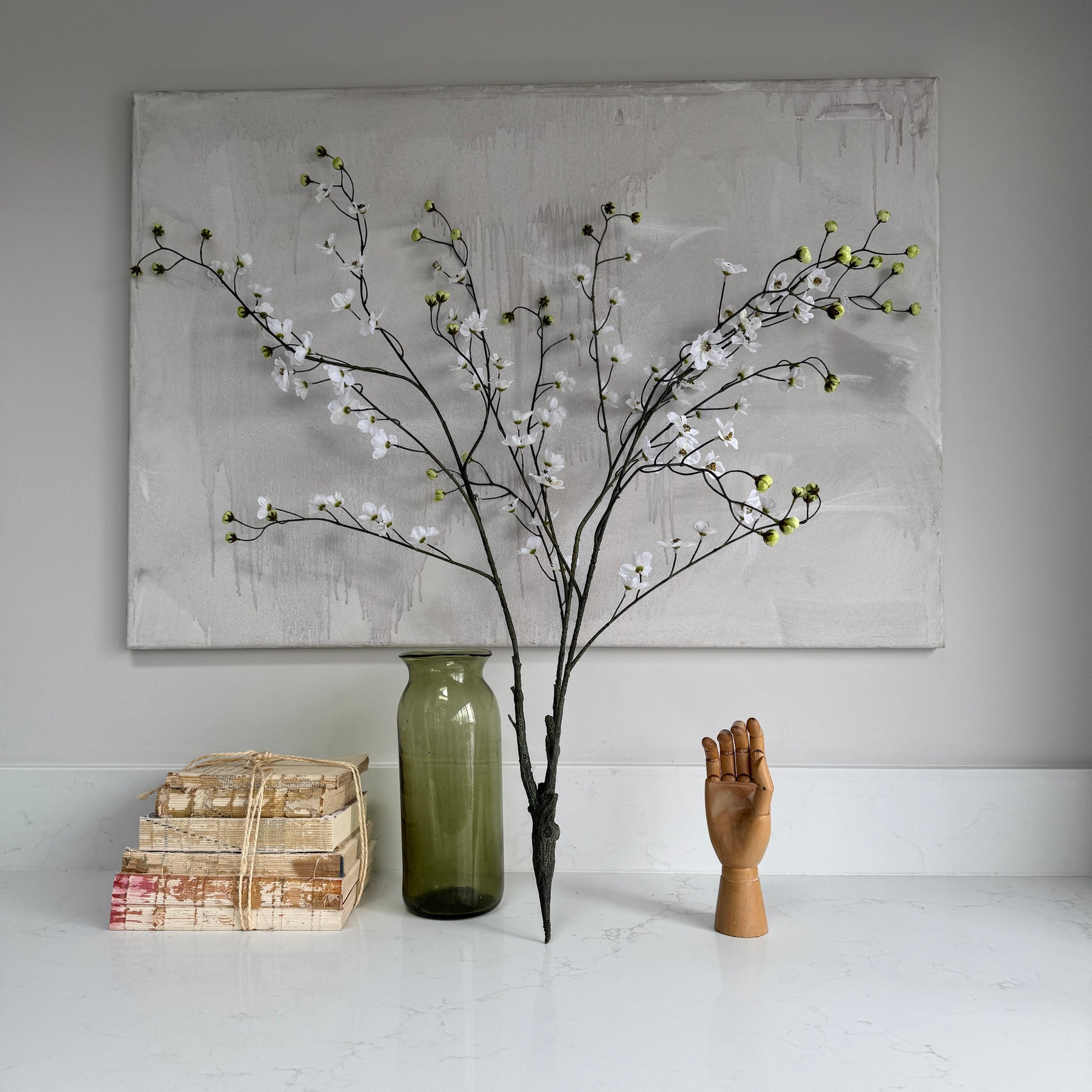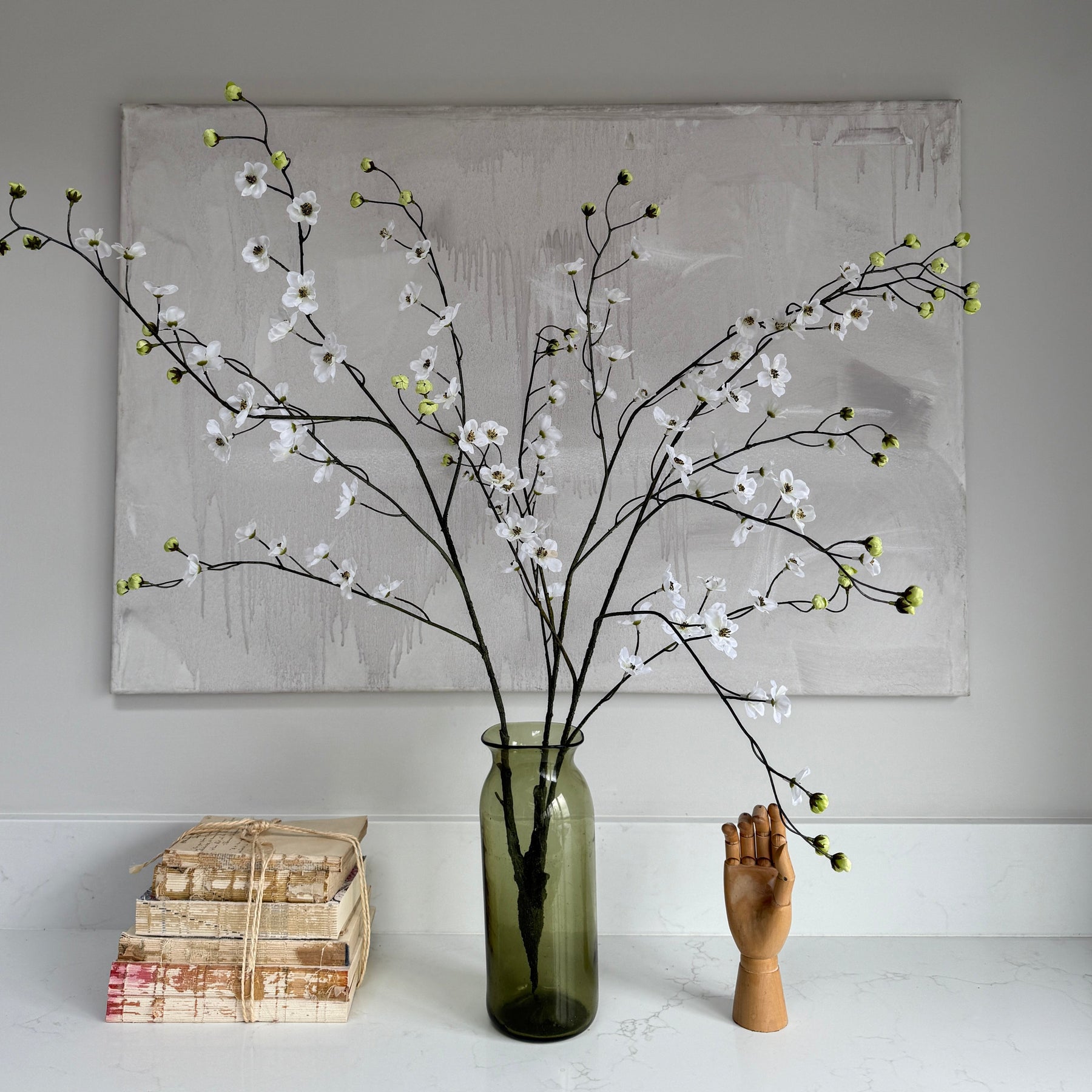 Our faux blossom bush comprises many stems tethered at the bottom as a plant would be if it were growing from the ground.