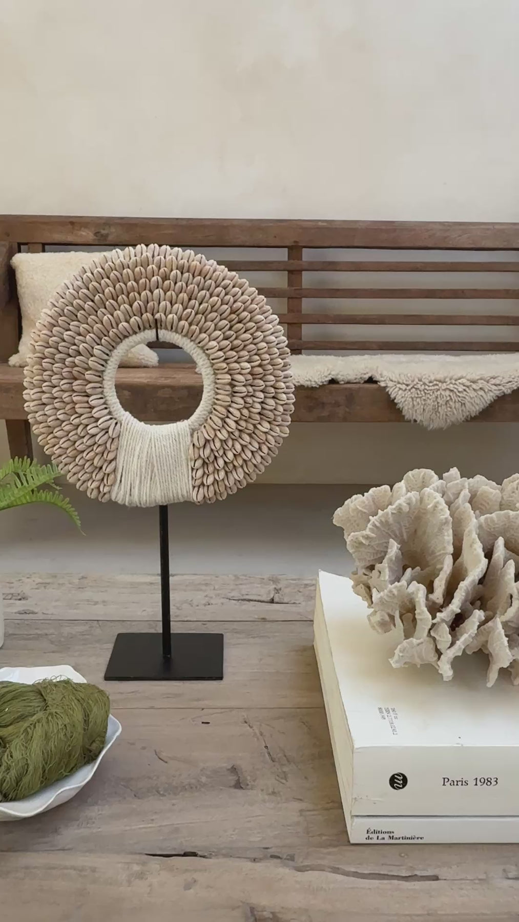 Style this beaded shell circle on a rustic console table or place it on a shelf in your bathroom. A versatile piece - it would look perfect in any room of your home.