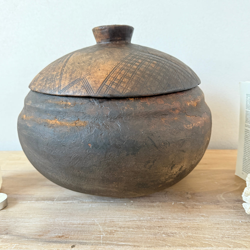Etched Antique Moroccan Lidded Pot