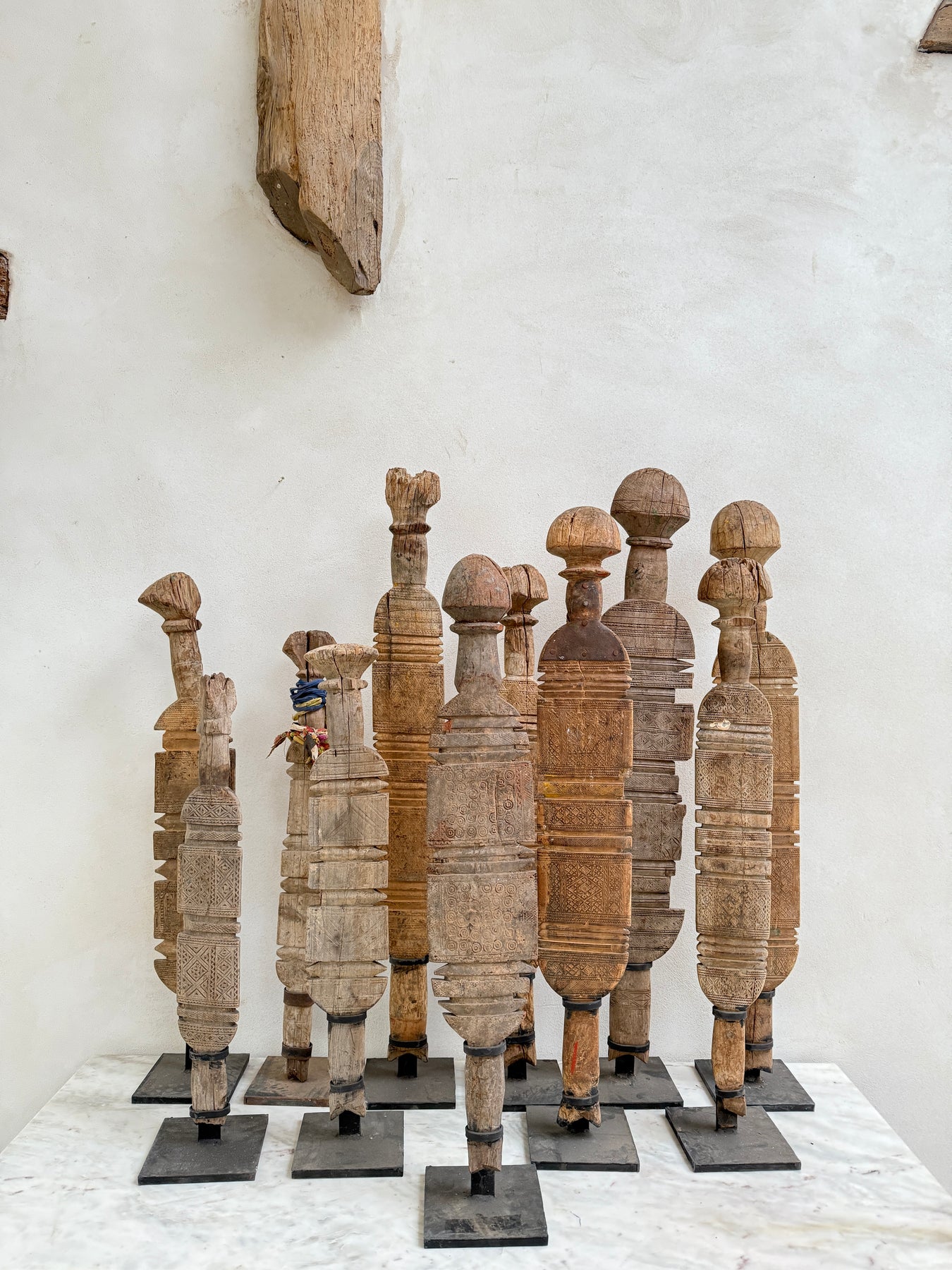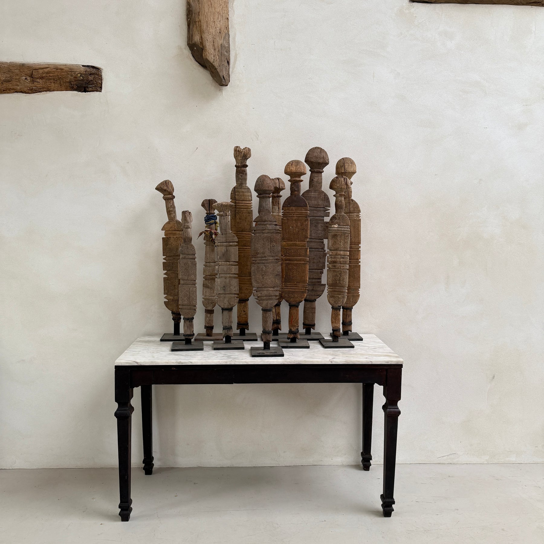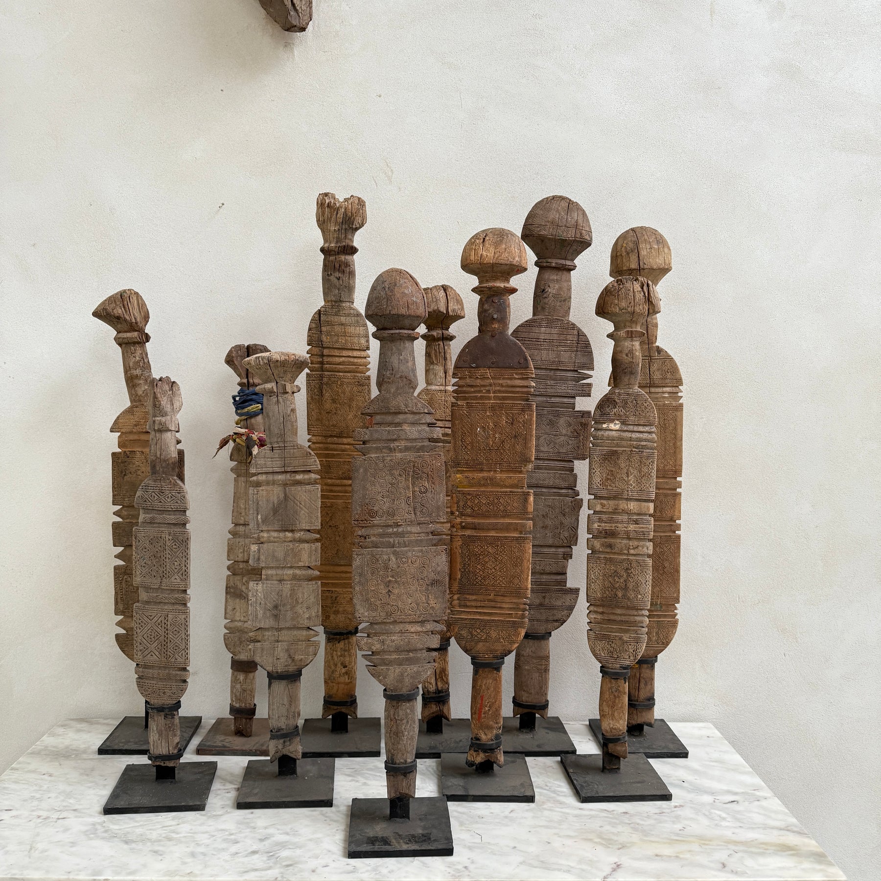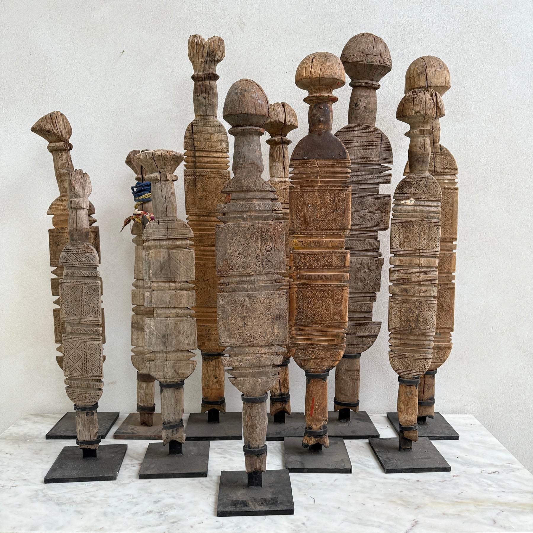 These extraordinary large sculptural items were once driven into the earth to provide shelter in large tents for the nomadic Berber trives of Morocco.