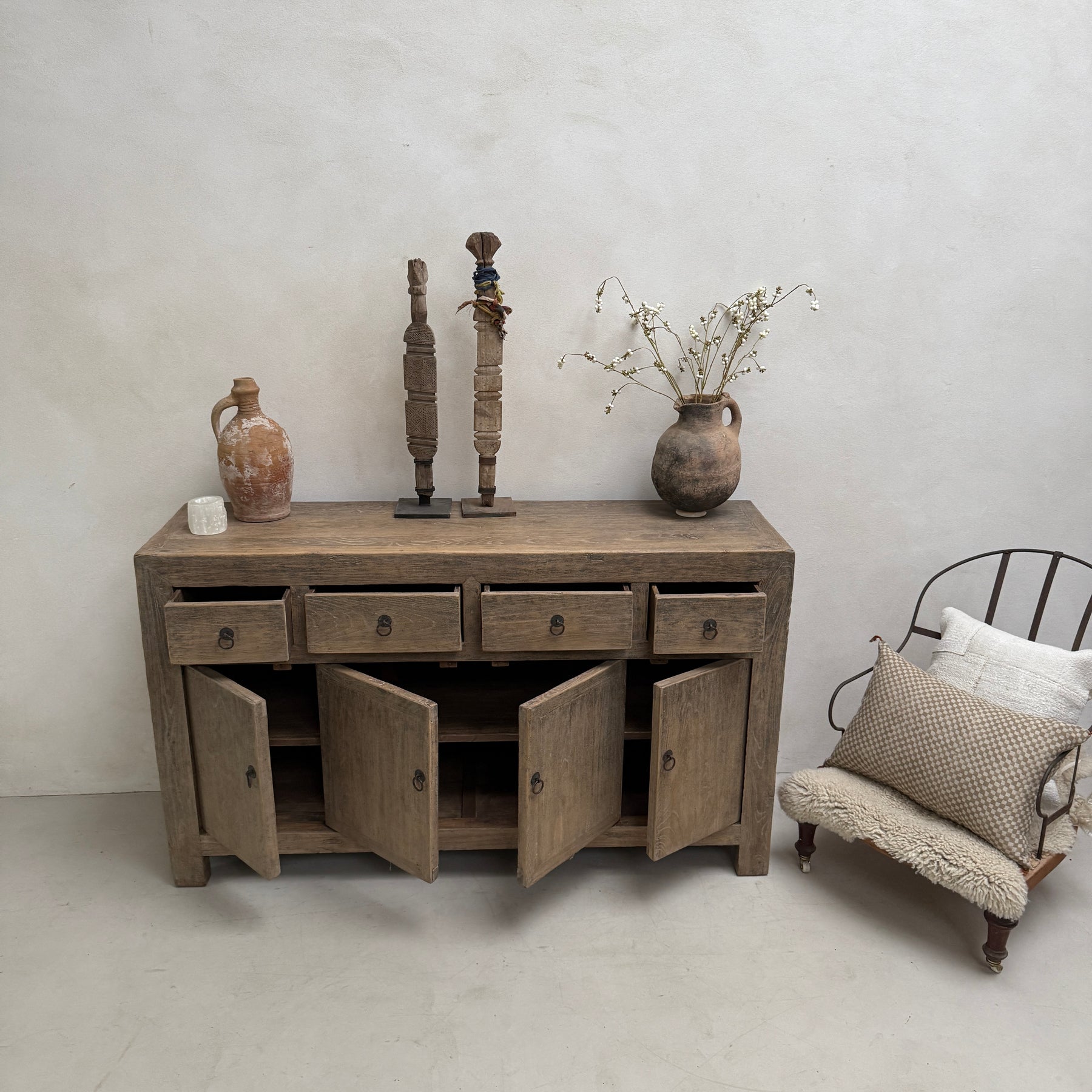Our antique elm cupboard Charter is a truly beautiful piece. An original antique, it is crafted from solid elm timbers and has a fabulous weather worn patina.