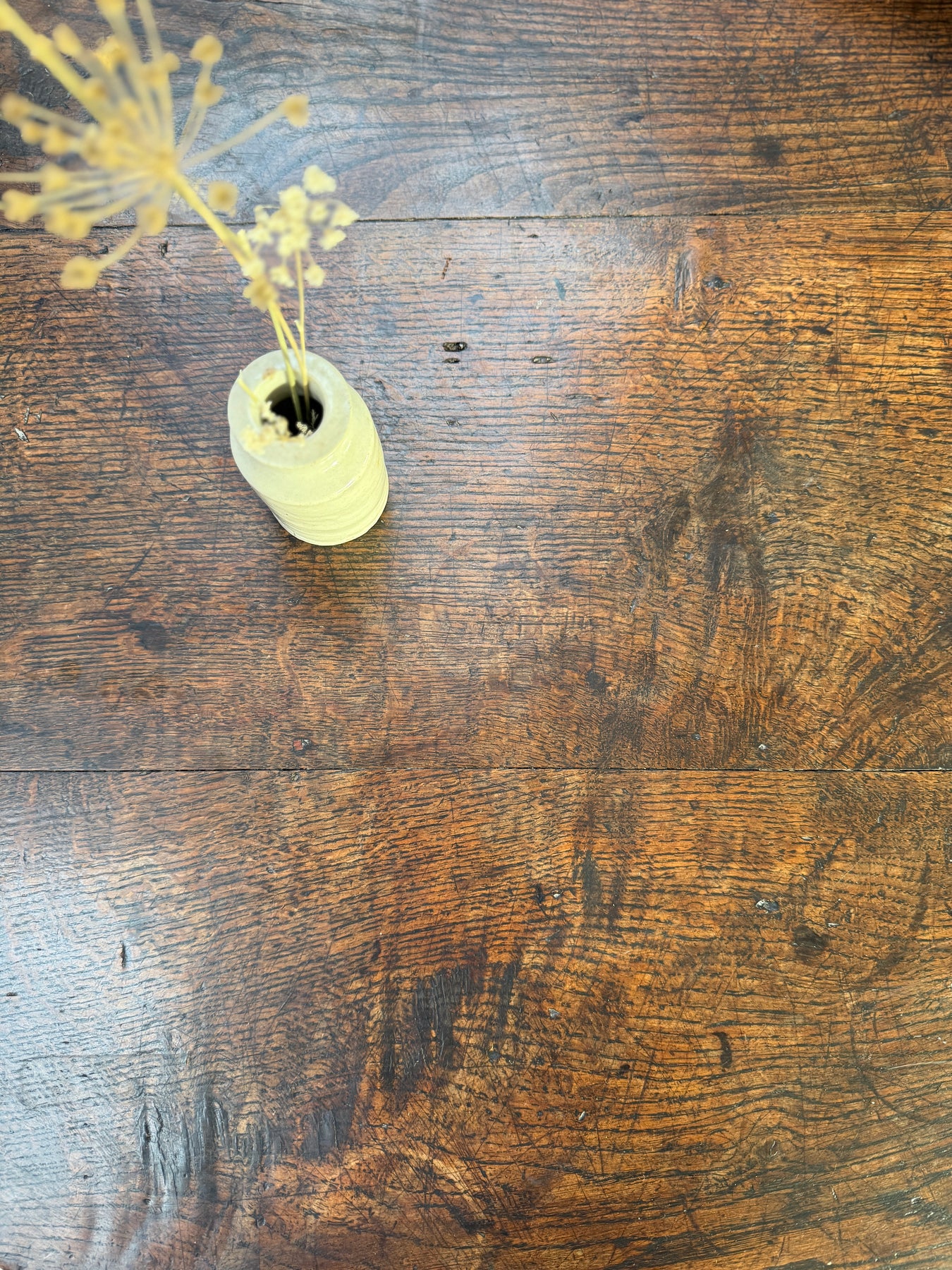 The generous round top provides the perfect surface for a reading lamp, candle or curated vignette, while the warm, honeyed tones of the oak bring natural depth and warmth into any room. Subtle wear and time-softened edges speak to decades of use, enhancing its charm and authenticity.