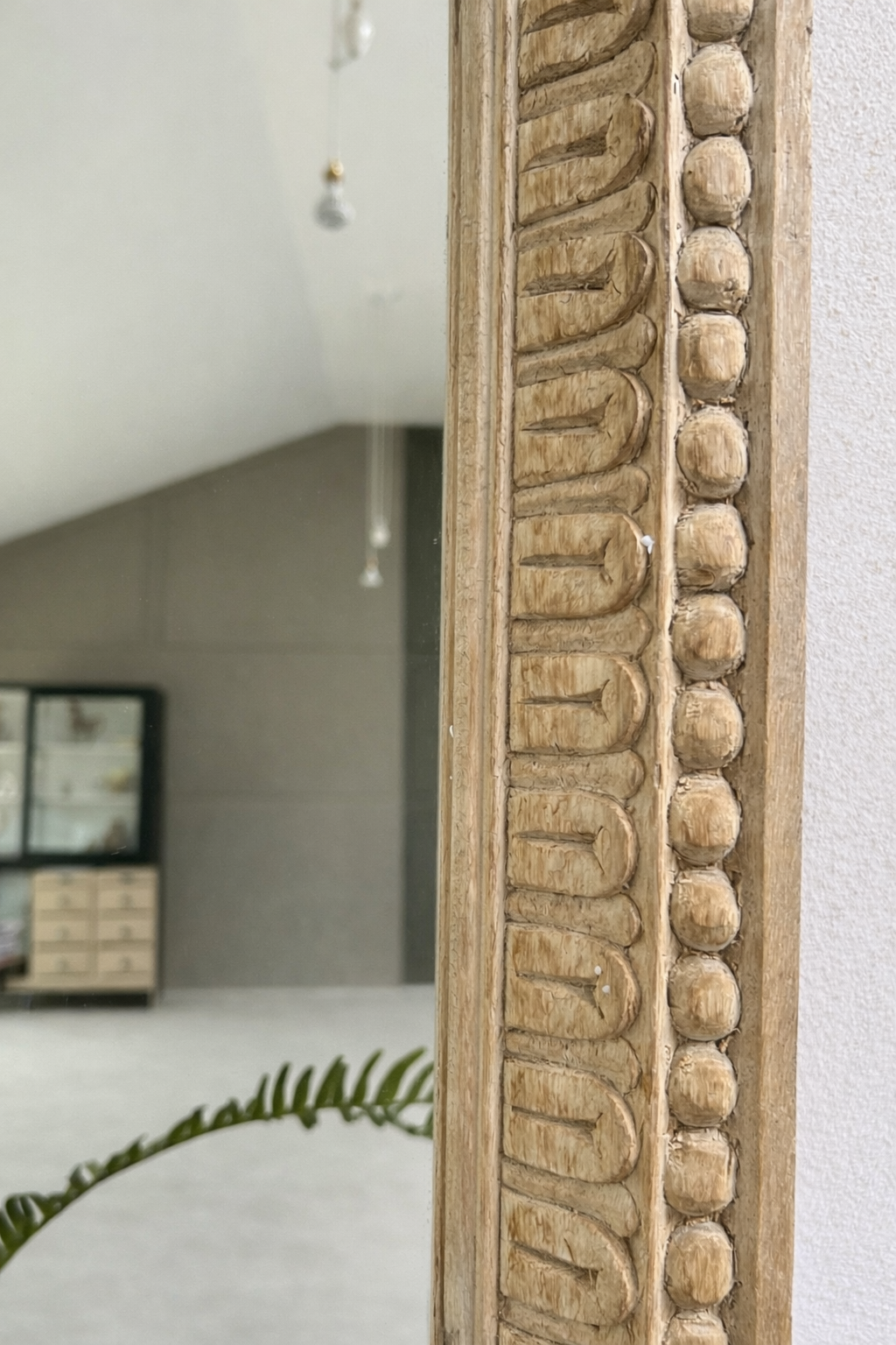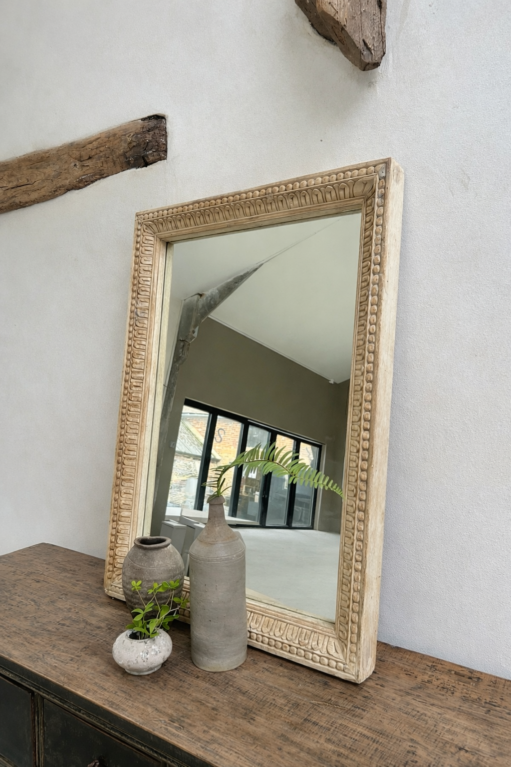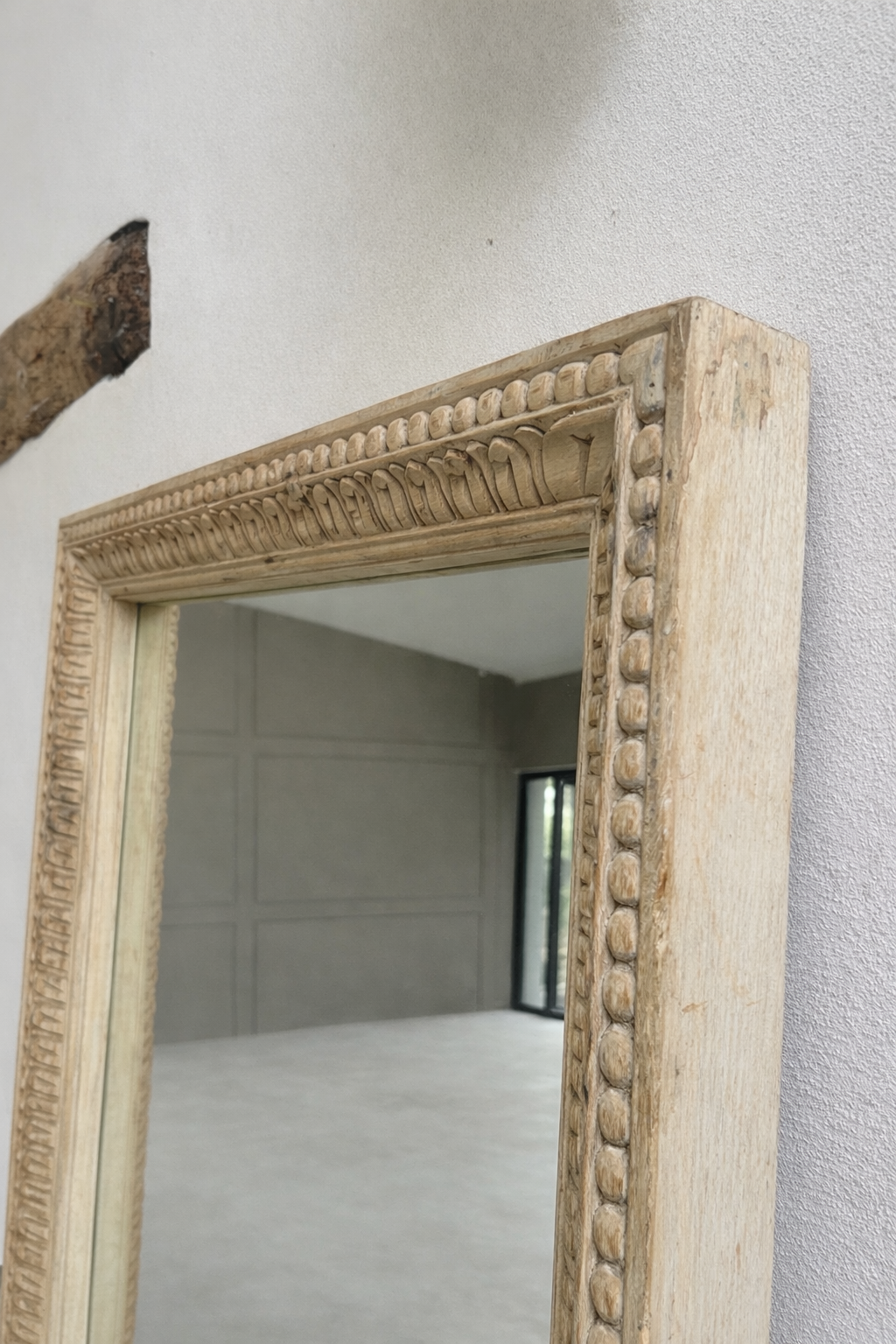 The carved border adds a subtle decorative edge without overwhelming, making it an easy addition to both relaxed country interiors and more refined, contemporary spaces. Styled above a console or dresser, it catches light beautifully and brings a calm, considered feel to a room.