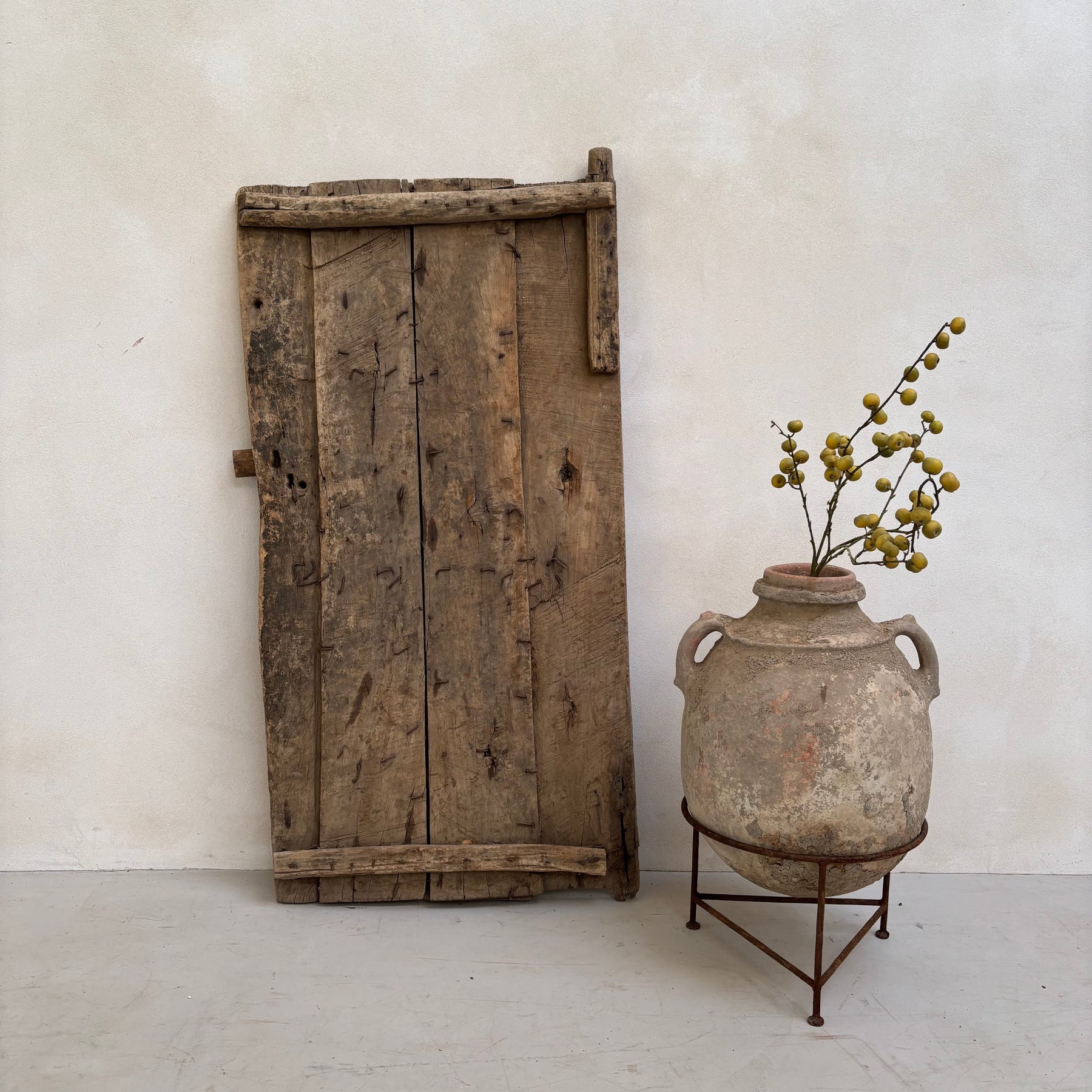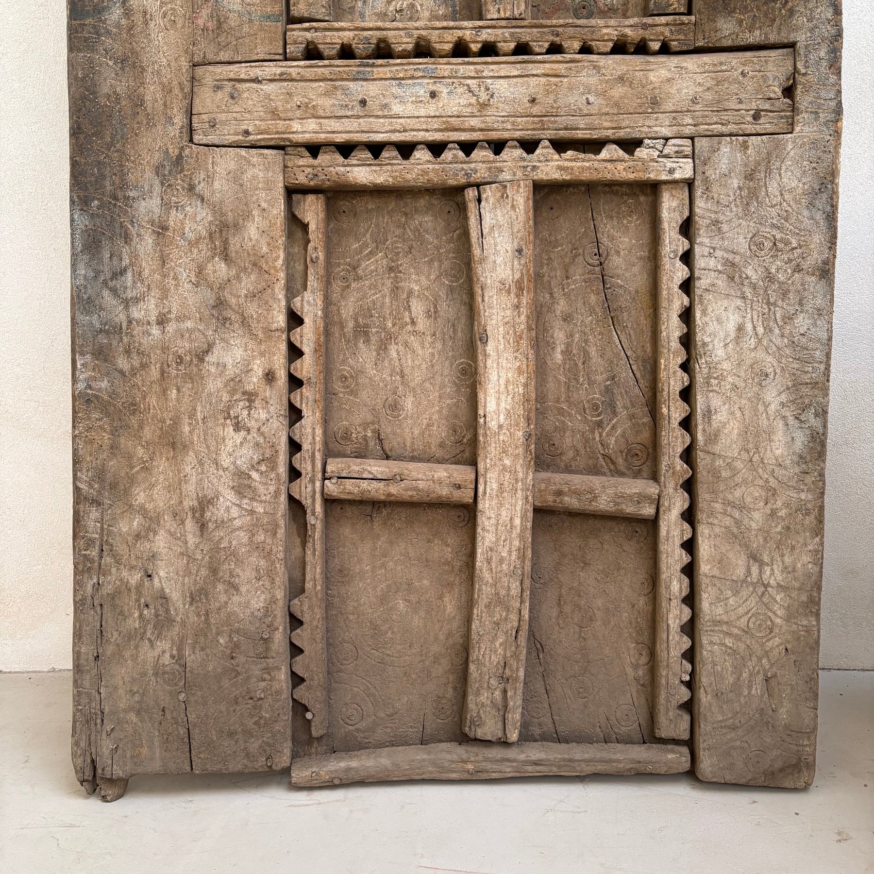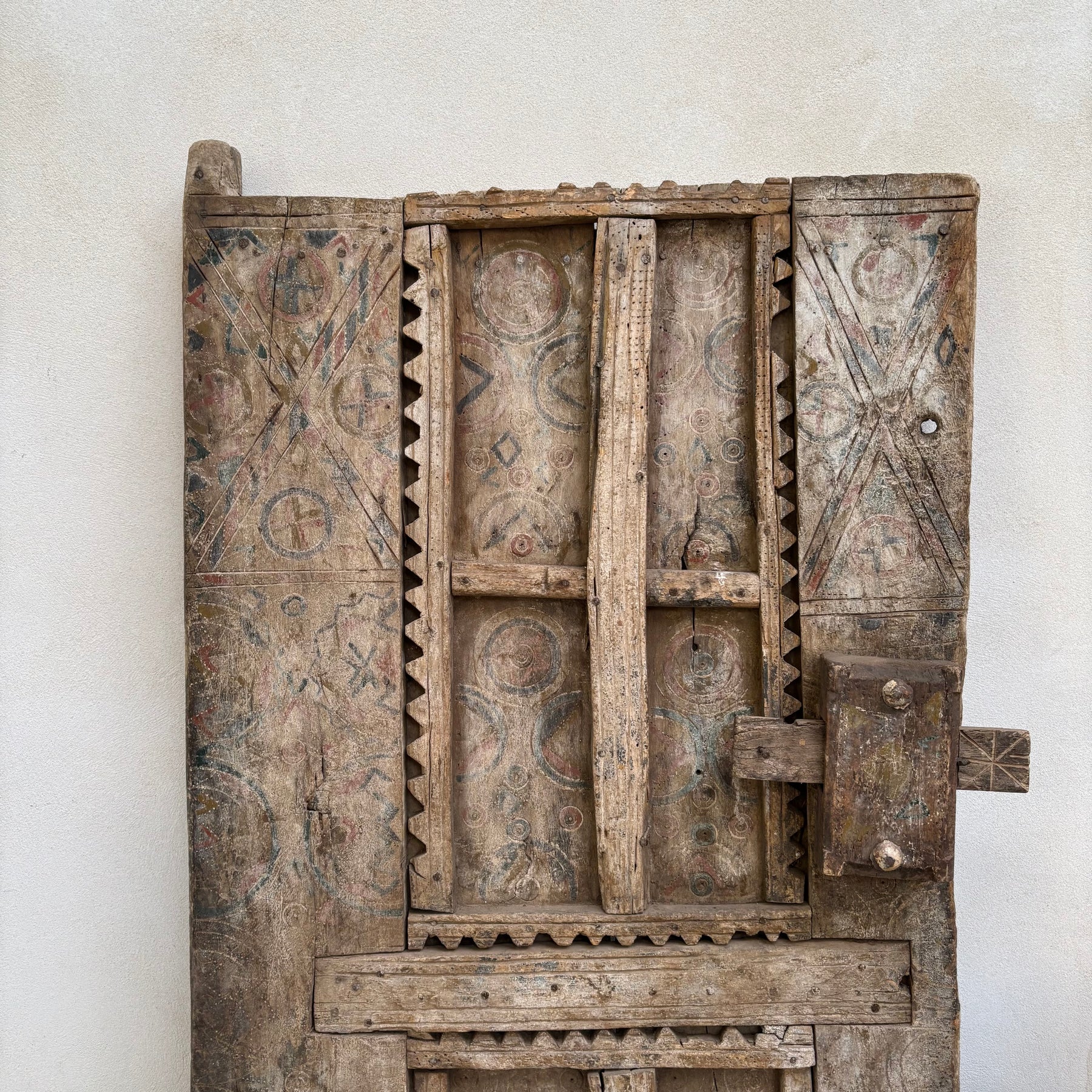 Perfect for repurposing as a bespoke headboards, or cabinets door. This door would have originated from an old farm, with the wood expertly carved to custom fit a window opening, showcasing exceptional Moroccan craftsmanship.