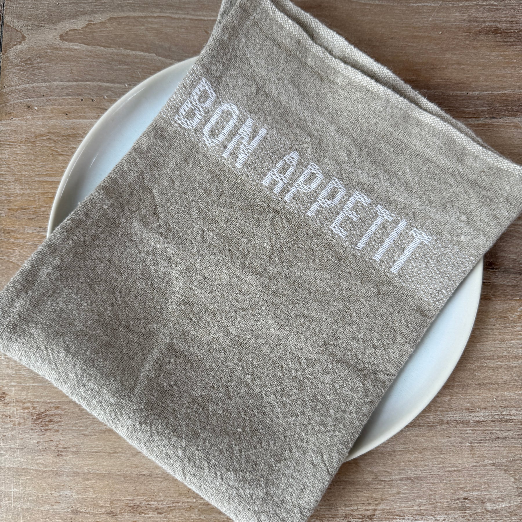 A wonderful French kitchen-inspired linen napkin. Made from soft, flowy linen, it will add a touch of understated sophistication to any dining table