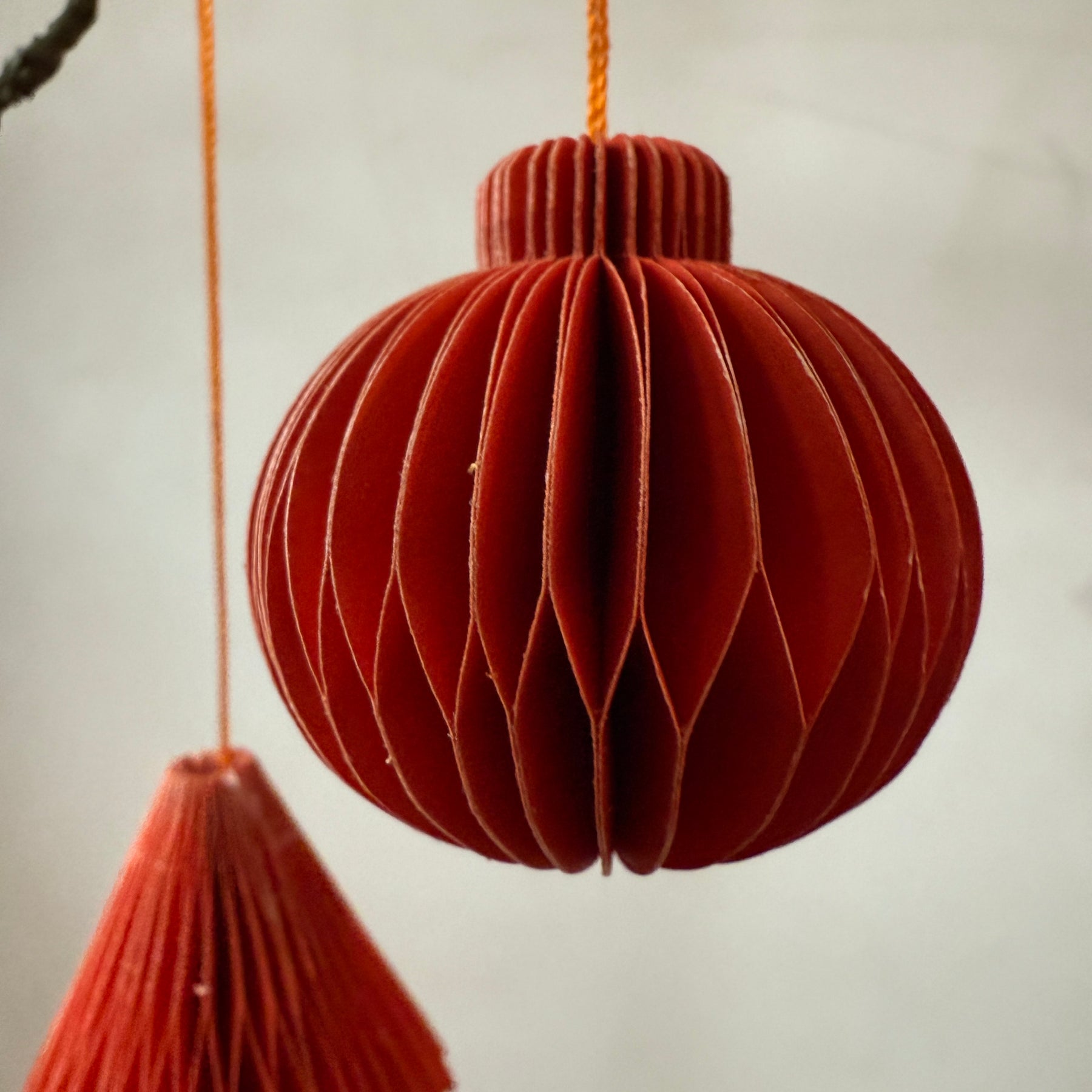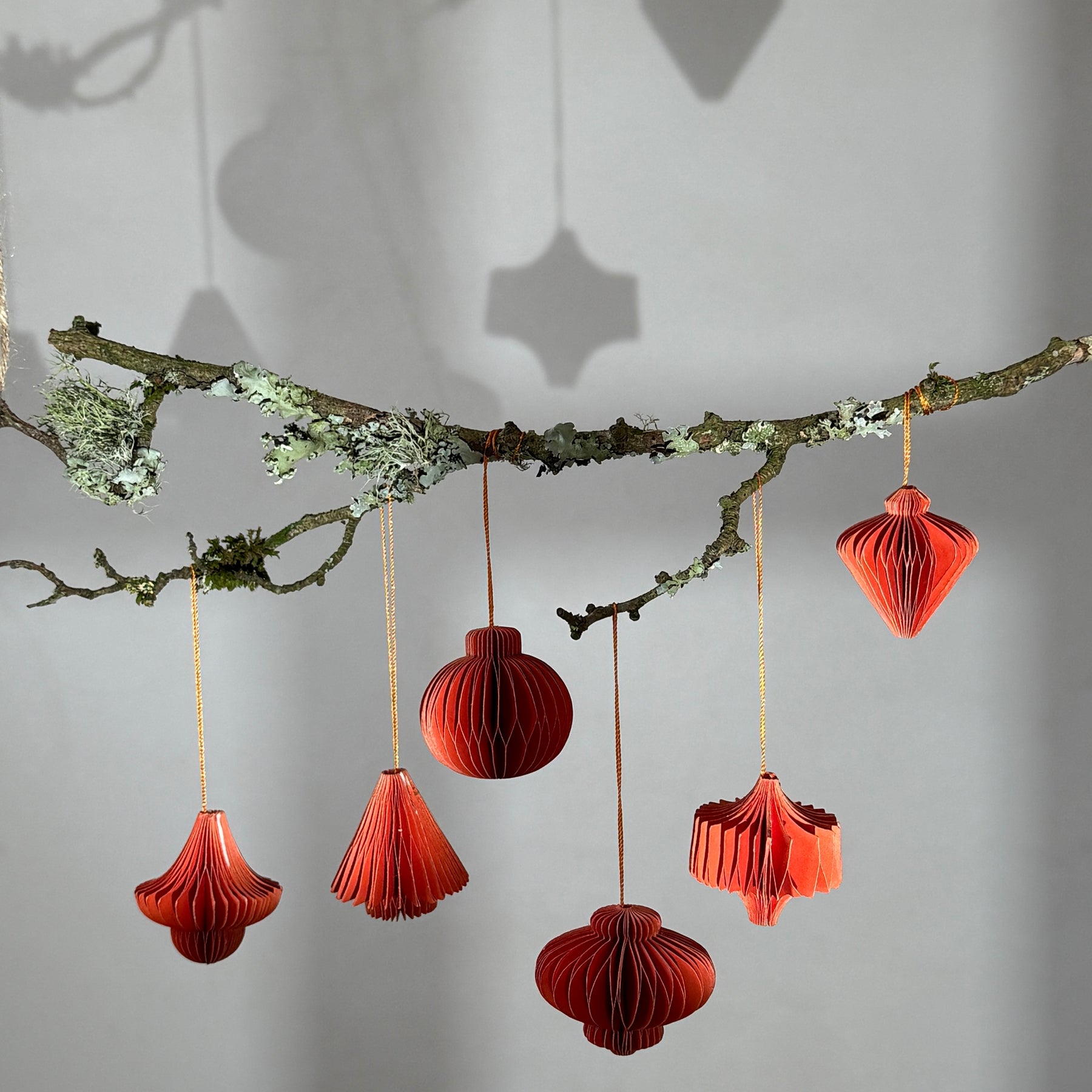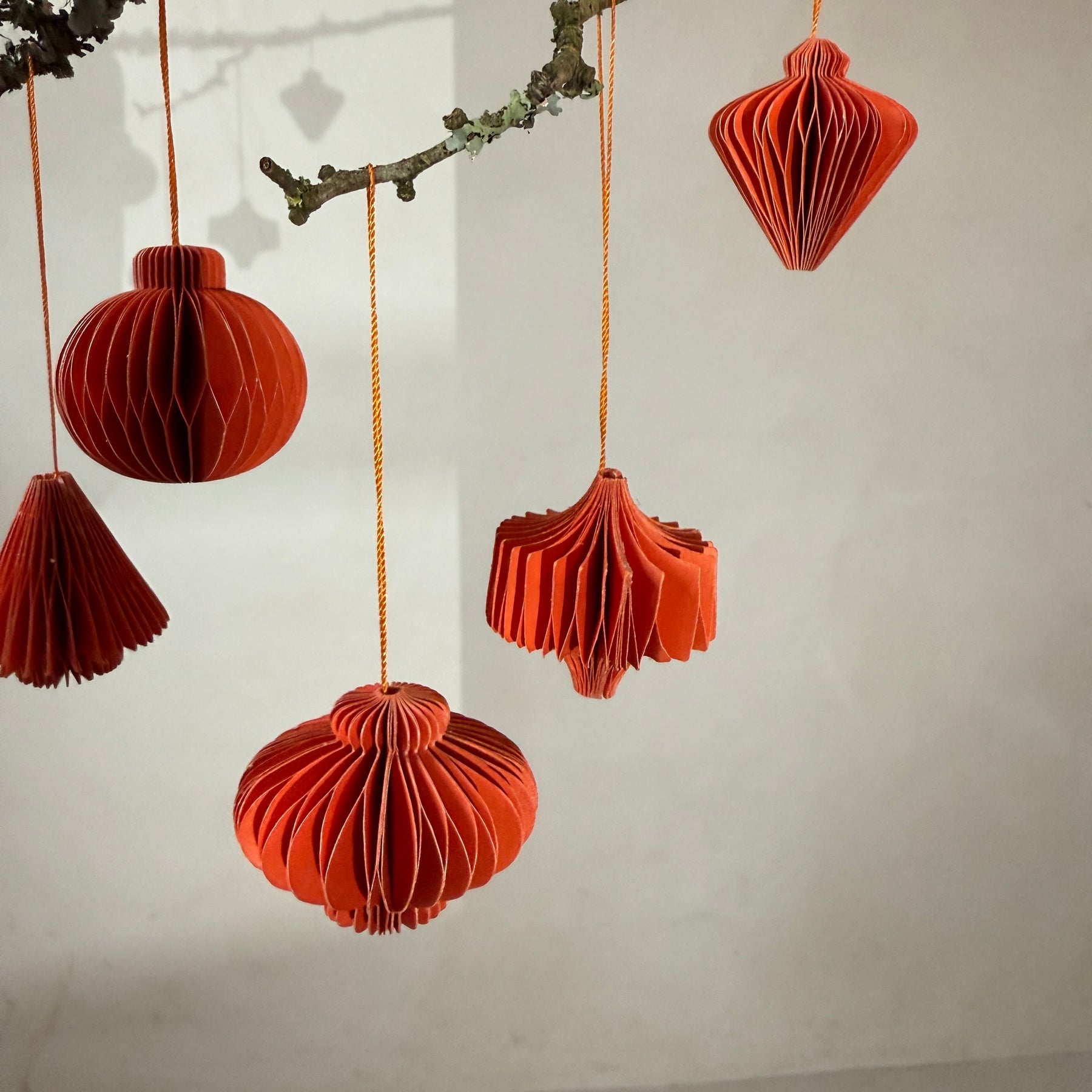 Box of six folded paper traditional decorations | Red