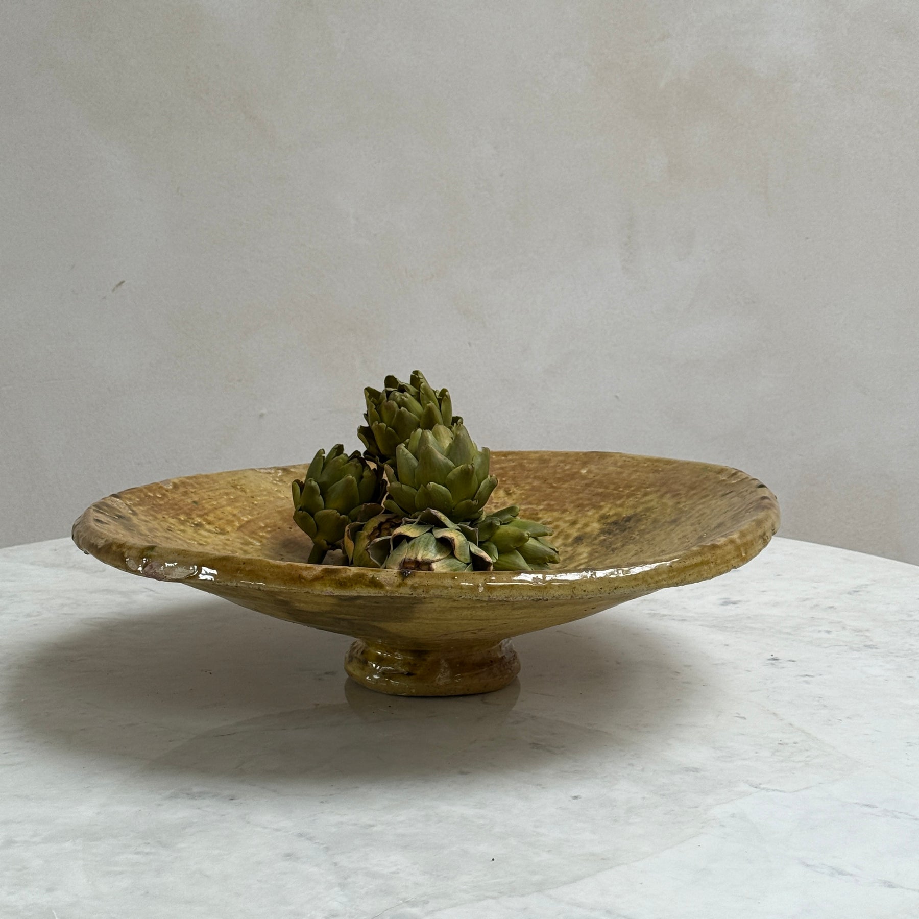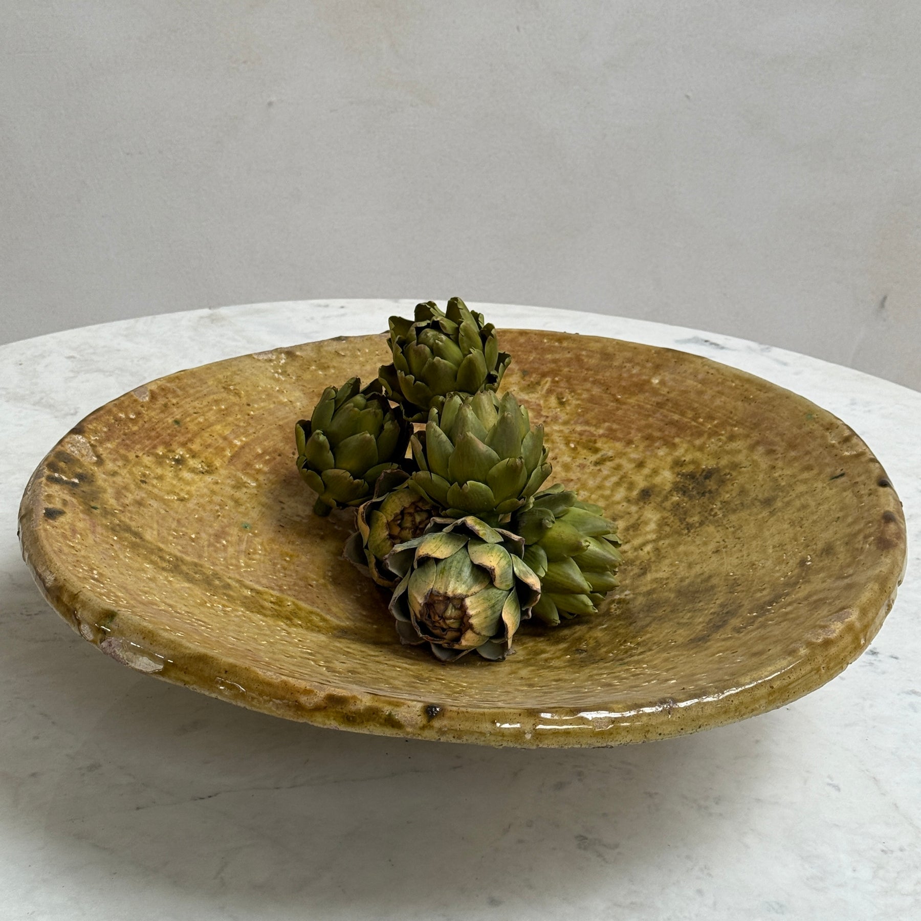 This stunning very large piece of hand made pottery exemplifies traditional Moroccan craftsmanship, featuring the characteristic half-glazed finish and vibrant green hues of pottery from the village of Tamegroute.